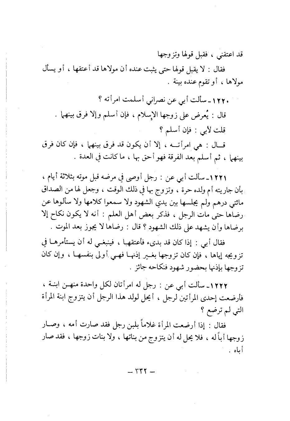 1220 - سَأَلت ابي عَن نَصْرَانِيّ أسلمت امْرَأَته