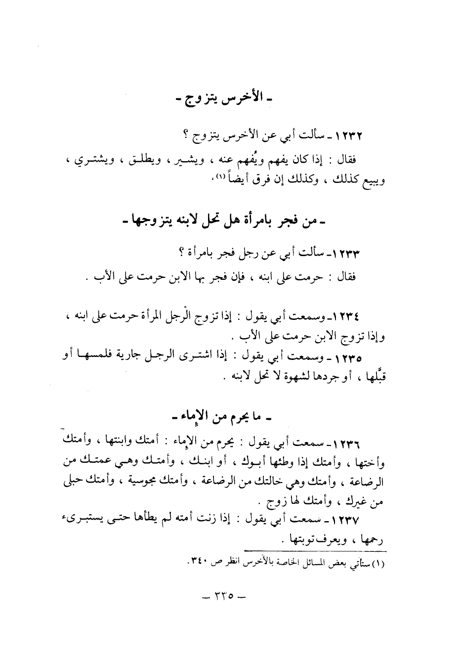 1234 - وَسمعت ابي يَقُول اذا تزوج الرجل الْمَرْأَة حرمت على ابْنه واذا تزوج الابْن حرمت على الاب