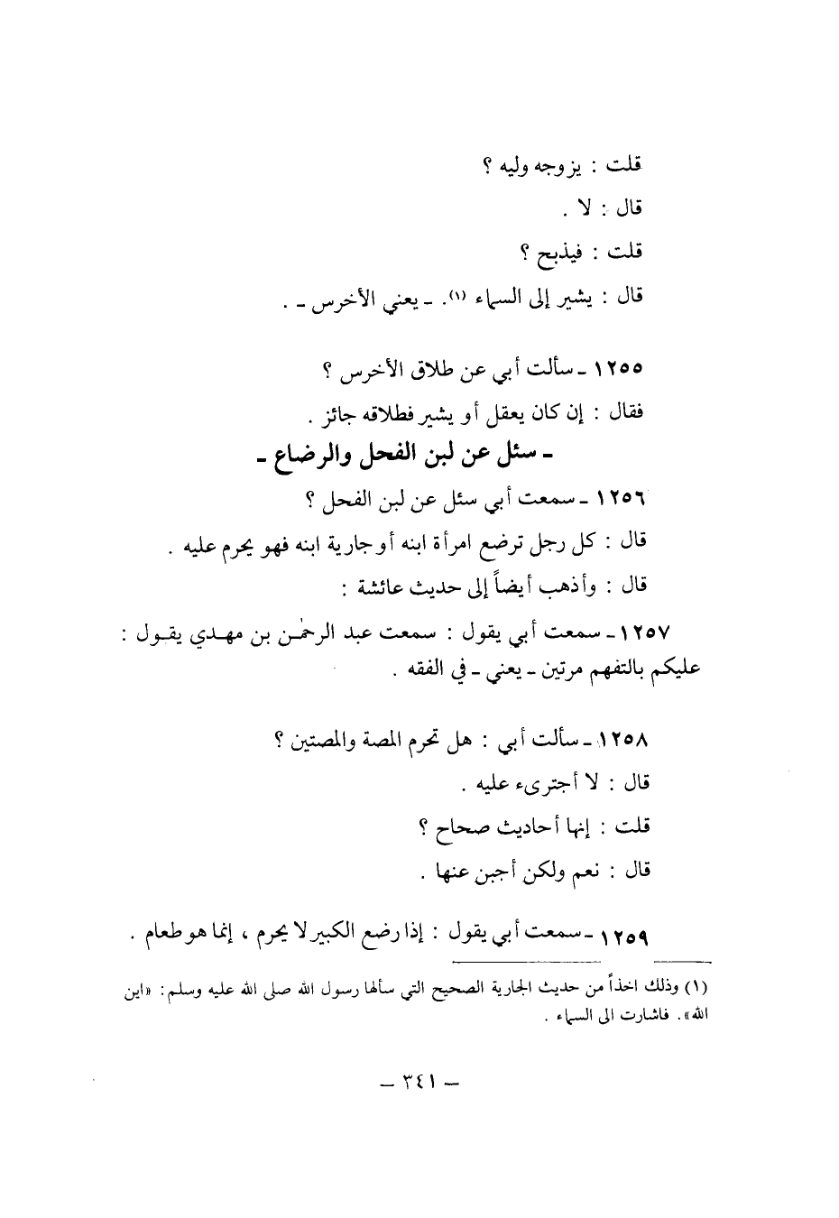 1256 - سَمِعت أبي سُئِلَ عَن لبن الْفَحْل