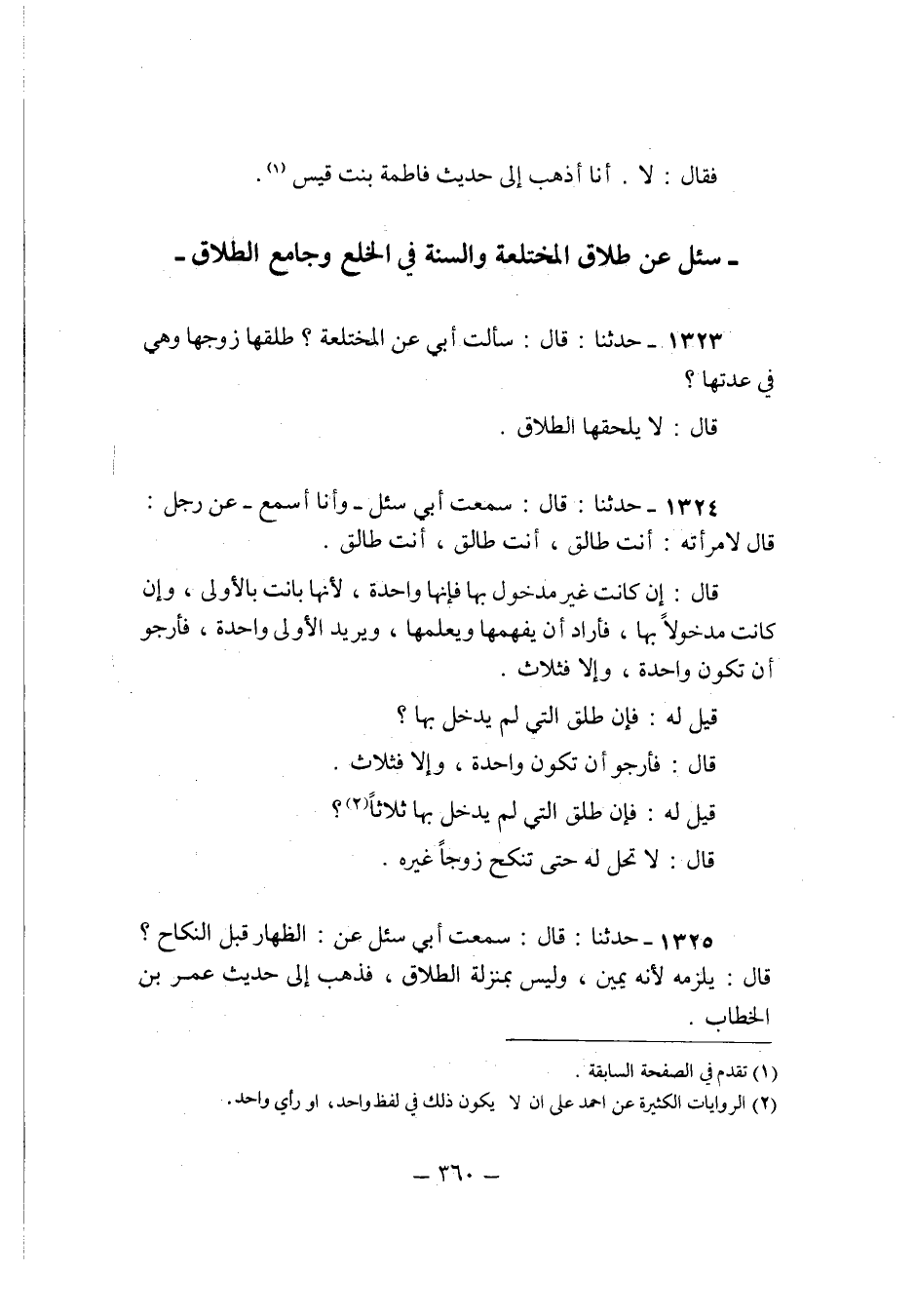 1324 - حَدثنَا قَالَ سَمِعت ابي سُئِلَ وانا اسْمَع عَن رجل قَالَ لامْرَأَته انت طَالِق انت طَالِق انت طَالِق