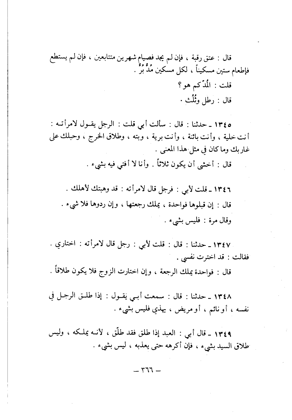 1345 - حَدثنَا قَالَ سَأَلت ابي قلت الرجل يَقُول لامْرَأَته انت خلية وانت بَائِنَة وانت بَريَّة وبته وَطَلَاق الخرج وحبلك على غاربك وَمَا كَانَ فِي مثل هَذَا الْمَعْنى