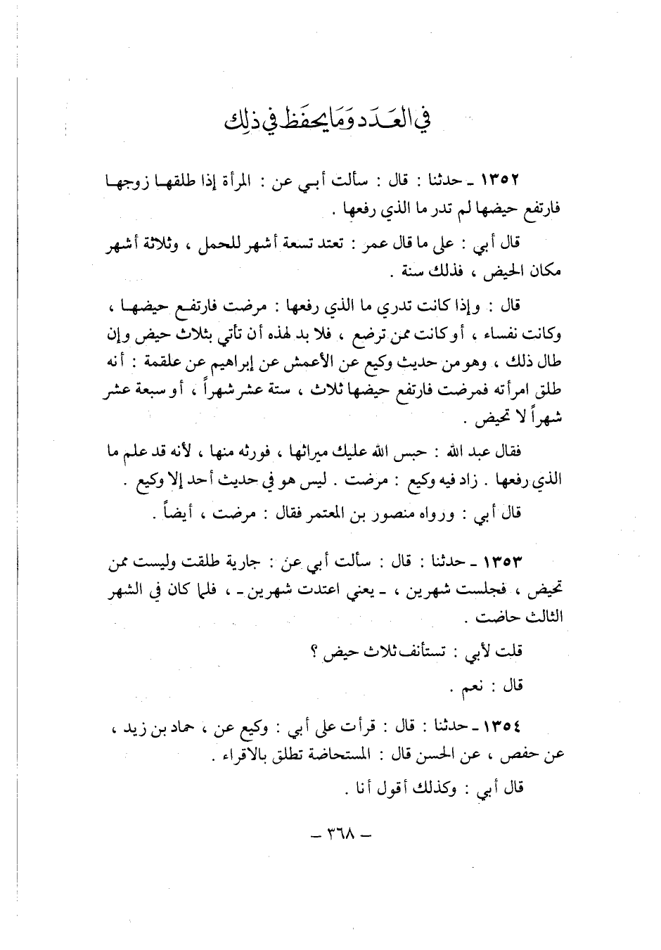 1352 - حَدثنَا قَالَ سَأَلت ابي عَن الْمَرْأَة اذا طَلقهَا زَوجهَا فارتفع حَيْضهَا لم تدر مَا الَّذِي رَفعهَا