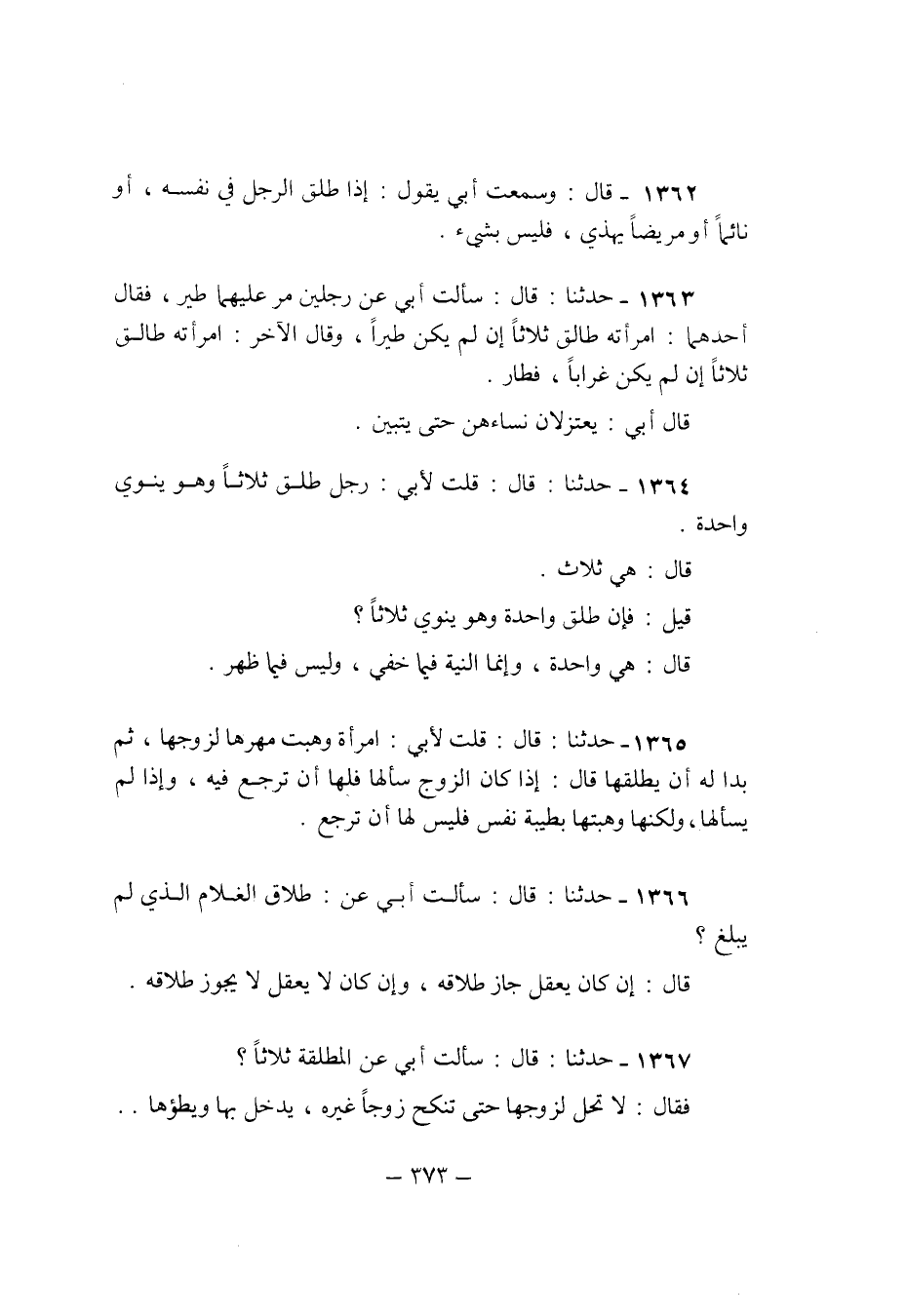 1362 - قَالَ وَسمعت ابي يَقُول اذا طلق الرجل فِي نَفسه اَوْ نَائِما اَوْ مَرِيضا يهذي فَلَيْسَ بِشَيْء