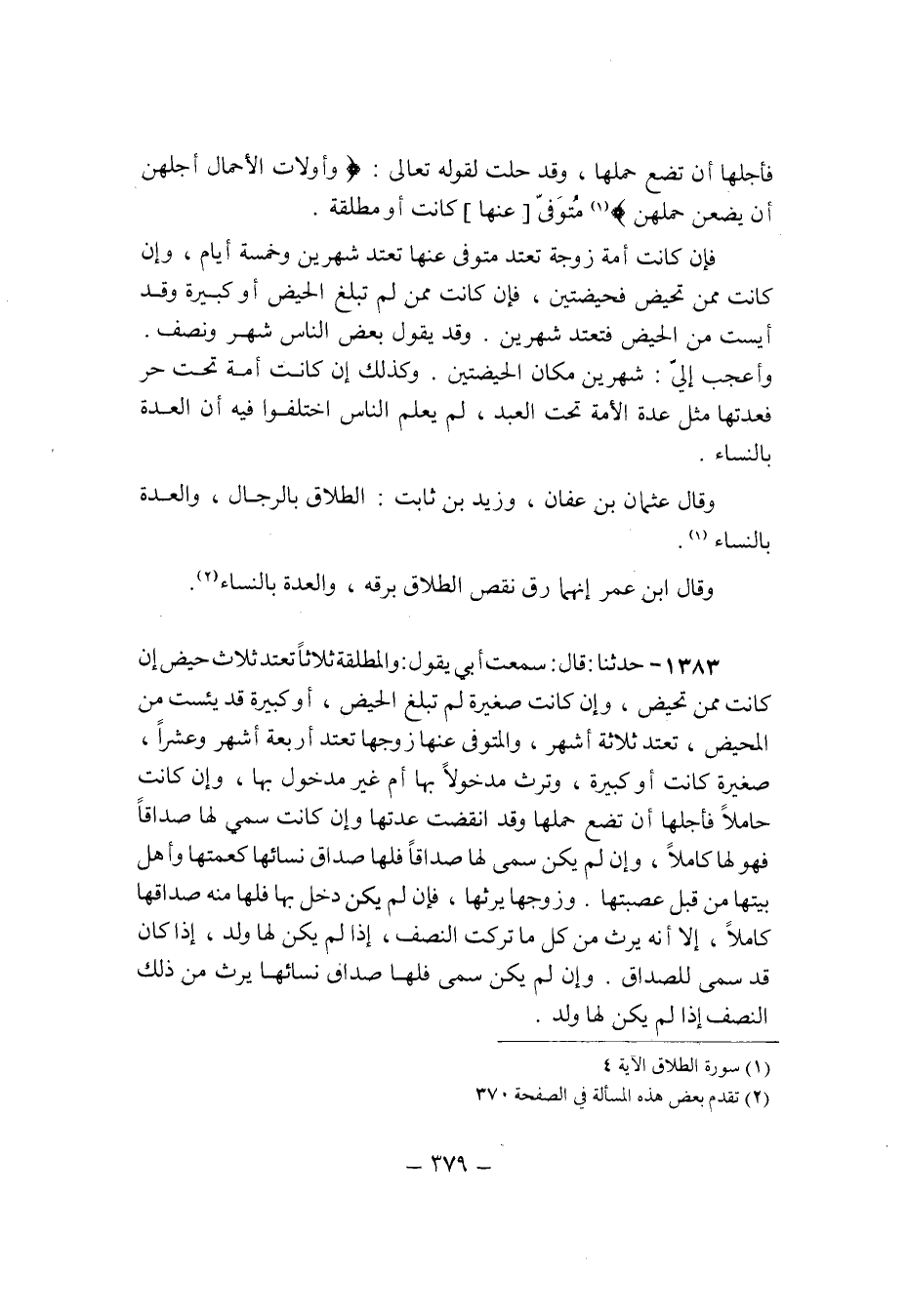 1383 - حَدثنَا قَالَ سَمِعت ابي يَقُول والمطلقة ثَلَاثًا تَعْتَد ثَلَاث حيض ان كَانَت مِمَّن تحيض وان كَانَت صَغِيرَة لم تبلغ الْحيض اَوْ كَبِيرَة قد يئست من الْمَحِيض تَعْتَد ثَلَاثَة اشهر والمتوفي عَنْهَا زَوجهَا تَعْتَد اربعة اشهر وَعشرا صَغِيرَة كَانَت اَوْ كَبِيرَة وترث مَدْخُولا بهَا أم غير مَدْخُول بهَا وان كَانَت حَامِلا فأجلها ان تضع حملهَا وَقد انْقَضتْ عدتهَا وان كَانَت سمي لَهَا صَدَاقا فَهُوَ لَهَا كَامِلا وان لم يكن سمى لَهَا صَدَاقا فلهَا صدَاق نسائها كعمتها واهل بَيتهَا من قبل عصبتها وَزوجهَا يَرِثهَا فَإِن لم يكن دخل بهَا فلهَا مِنْهُ صَدَاقهَا كَامِلا الا انه يَرث من كل مَا تركت النّصْف اذا لم يكن لَهَا ولد اذا كَانَ قد سمى للصداق وان لم يكن سمى فلهَا صدَاق نسائها يَرث من ذَلِك النّصْف اذا لم يكن لَهَا ولد