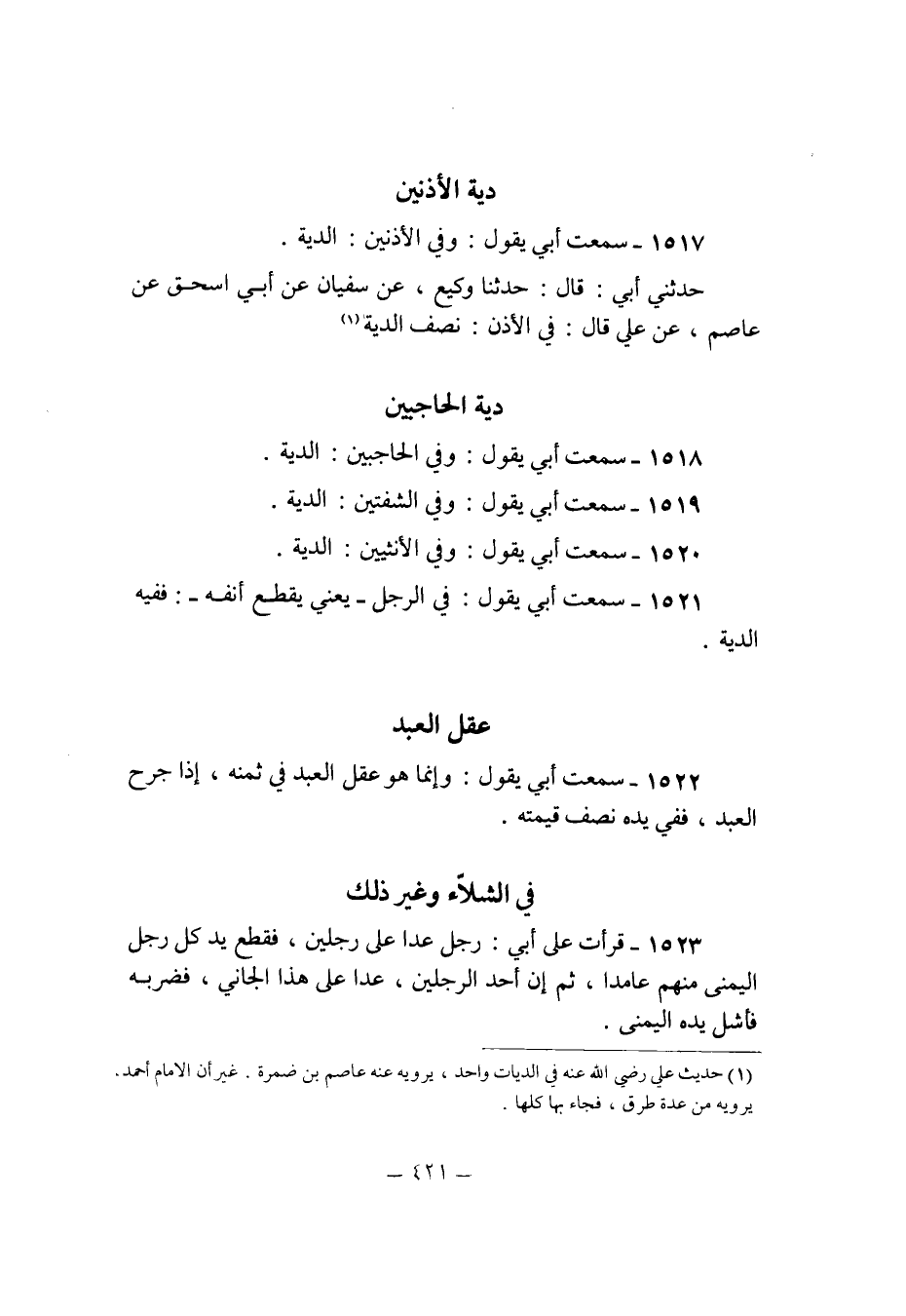1517 - سَمِعت ابي يَقُول وَفِي الاذنين الدِّيَة