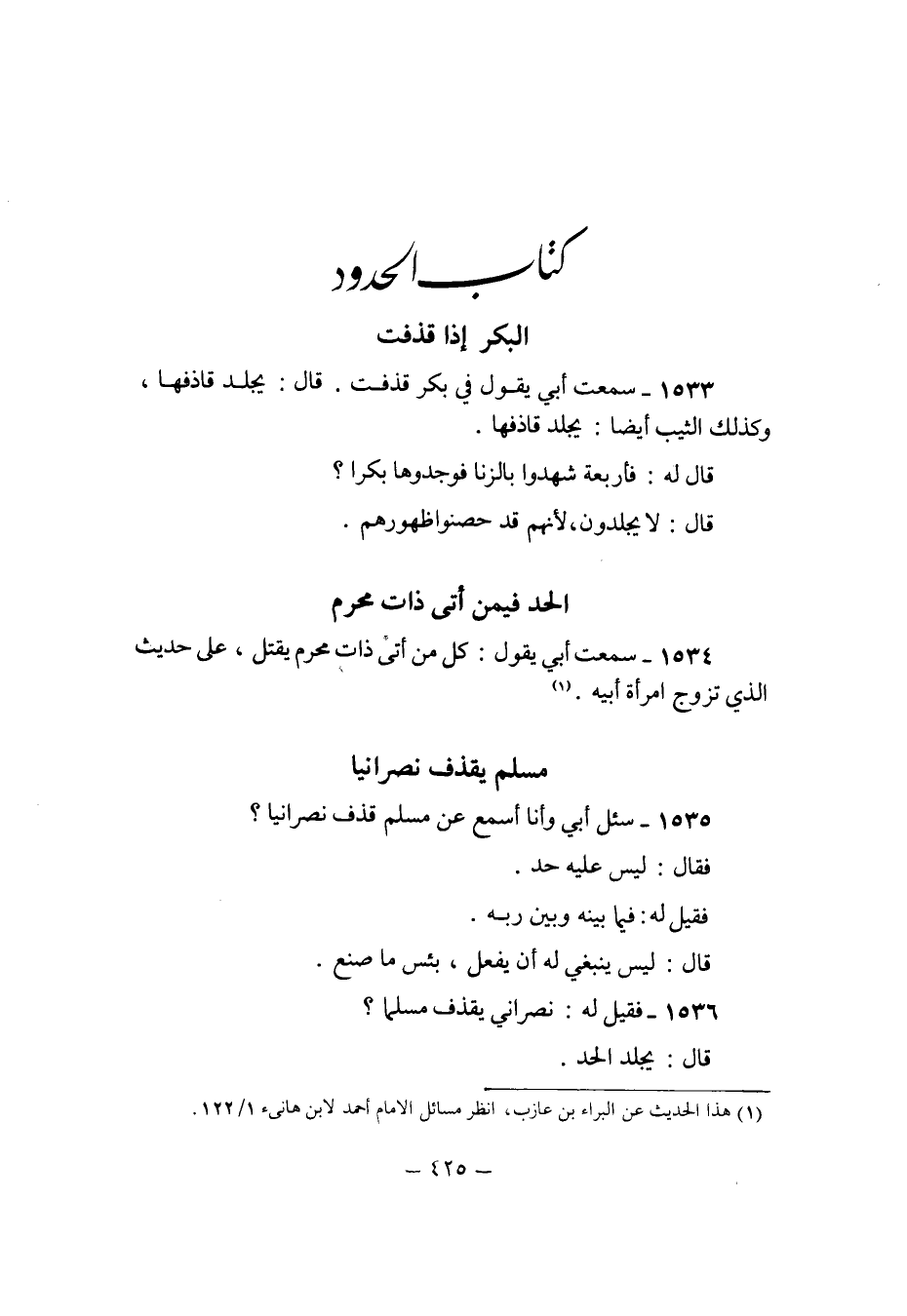 1535 - سُئِلَ ابي وانا اسْمَع عَن مُسلم قذف نَصْرَانِيّا