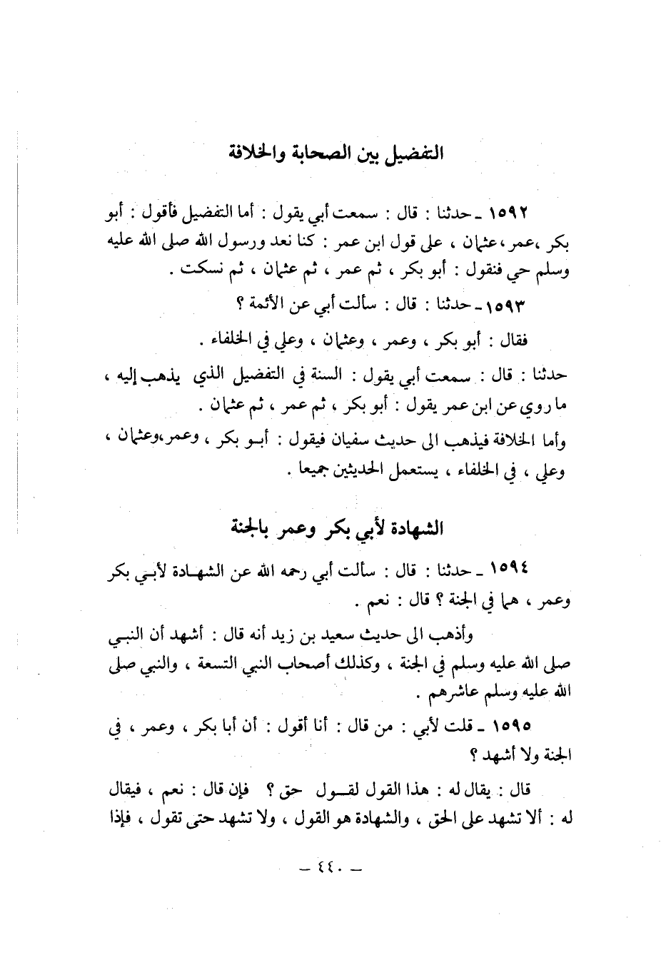 1594 - حَدثنَا قَالَ سَأَلت ابي رَحمَه الله عَن الشَّهَادَة لابي بكر وَعمر هما فِي الجنه قَالَ نعم