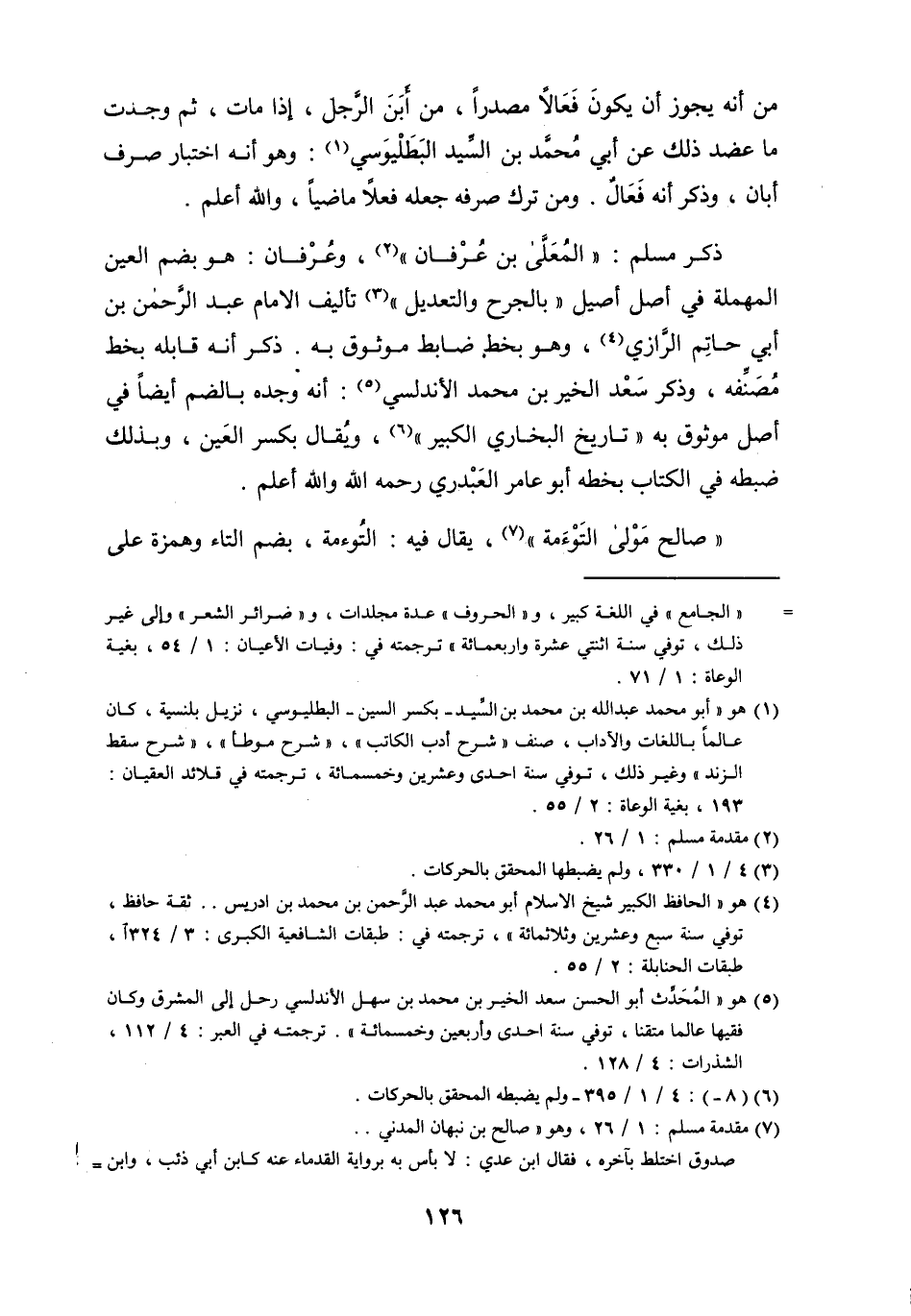 الْحَافِظ أبي عَامر الْعَبدَرِي بِرِوَايَة أبي الْفَتْح السَّمرقَنْدِي عَن عبد الغافر الْفَارِسِي وَفِي غَيرهمَا وَفِي رِوَايَة جمَاعَة آخَرين من رُوَاة الْكتاب ابْن غُضَيْف بضاد مُعْجمَة وَهُوَ خطأ وَإِنَّمَا هُوَ بِالطَّاءِ الْمُهْملَة من وُجُوه مُعْتَمدَة وَهُوَ كَذَلِك مَحْفُوظ مَعْرُوف وَهُوَ عِنْدِي على الصَّوَاب فِيمَا انتخبته من أصل فِيهِ سَماع شَيخنَا أبي الْحسن الطوسي وَعَلِيهِ خطّ شَيْخه الفراوي وقرأته عَلَيْهِ عِنْد قبر مُسلم وَالله أعلم