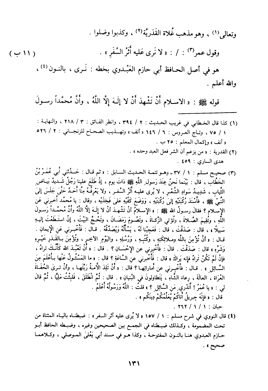 وَالَّذِي صَار إِلَيْهِ مُسلم هُوَ المستنكر وَمَا أنكرهُ قد قيل إِنَّه القَوْل الَّذِي عَلَيْهِ أَئِمَّة هَذَا الْعلم عَليّ بن الْمَدِينِيّ وَالْبُخَارِيّ وَغَيرهمَا وَمِنْهُم من لم يقْتَصر فِي ذَلِك على اشْتِرَاط مُطلق اللِّقَاء أَو السماع وَزَاد عَلَيْهِ فَاشْترط أَبُو عَمْرو الداني المقرىء الْحَافِظ أَن يكون مَعْرُوفا بالرواية عَنهُ