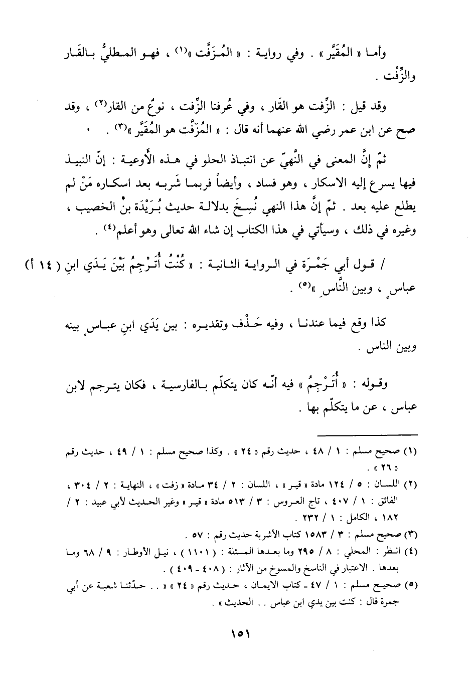 وَأما الحنتم فَهُوَ بِالْحَاء الْمُهْملَة وَالنُّون وَالتَّاء الْمُثَنَّاة من فَوق وَالْمِيم على وزان جَعْفَر وَهُوَ جمع حنتمة وَقد اخْتلف فِي مَعْنَاهُ على وُجُوه أَحدهَا وَهُوَ أقواها إِنَّه الجرار الْخضر وَذَلِكَ مَرْوِيّ عَن أبي هُرَيْرَة رَضِي الله عَنهُ فِي كتاب الْأَشْرِبَة من هَذَا الصَّحِيح وَقَالَ بِهِ غير وَاحِد من أهل اللُّغَة والغريب