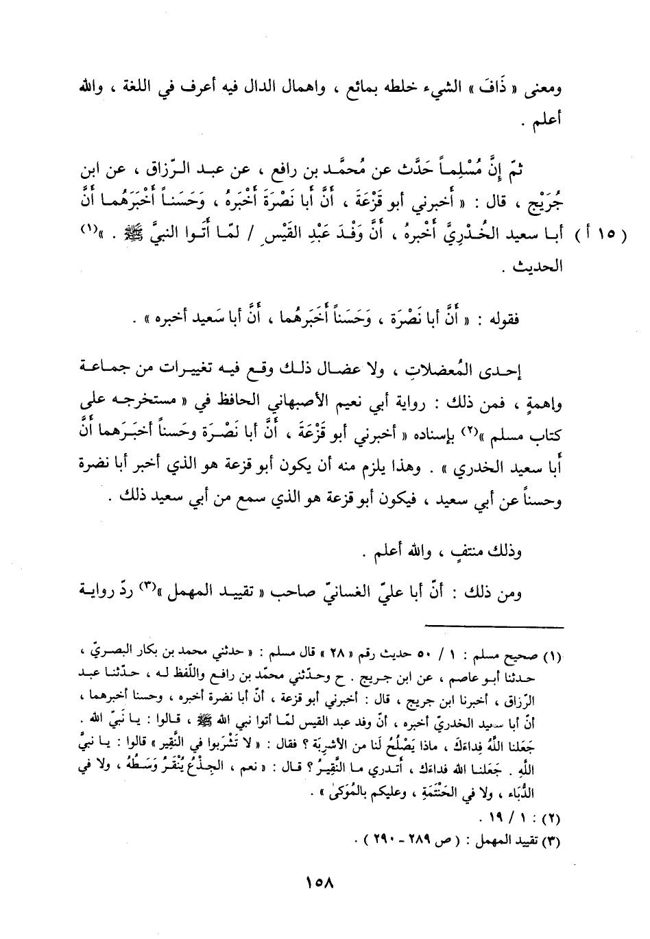 ثمَّ إِن مُسلما حدث عَن مُحَمَّد بن رَافع عَن عبد الرَّزَّاق عَن ابْن جريج قَالَ أَخْبرنِي أَبُو قزعة أَن أَبَا نَضرة أخبرهُ وحسنا أخبرهما أَن أَبَا سعيد الْخُدْرِيّ