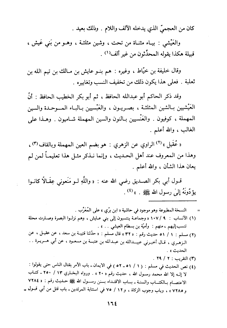 وَقَالَ خَليفَة بن خياط وَغَيره هم بَنو عايش بن مَالك بن تيم الله بن ثَعْلَبَة فعلى هَذَا يكون ذَلِك من تَخْفيف النّسَب وتغاييره