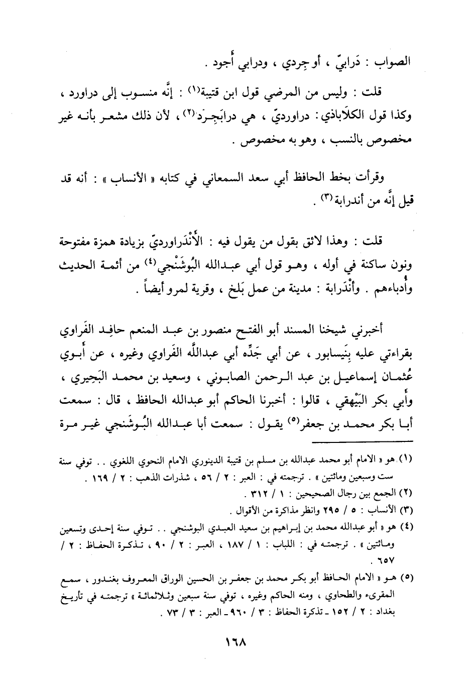 قلت وَلَيْسَ من المرضي قَول ابْن قُتَيْبَة إِنَّه مَنْسُوب إِلَى دراورد وَكَذَا قَول الكلاباذي دراوردي هِيَ درابجرد لِأَن ذَلِك مشْعر بِأَنَّهُ غير مَخْصُوص بِالنّسَبِ وَهُوَ بِهِ مَخْصُوص