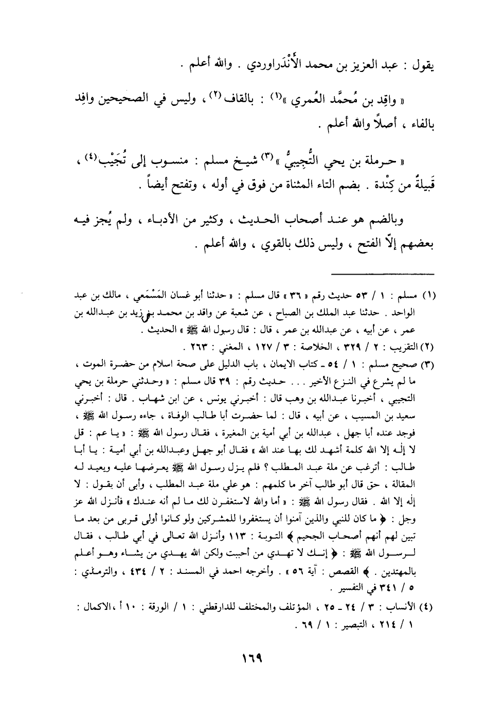 وَاقد بن مُحَمَّد الْعمريّ بِالْقَافِ وَلَيْسَ فِي الصَّحِيحَيْنِ وَافد بِالْفَاءِ أصلا وَالله أعلم