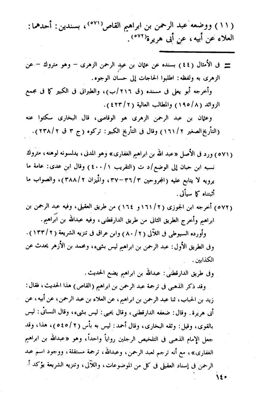 (11) وَوَضعه عبد الرَّحْمَن بن إِبْرَاهِيم الْقَاص، بِسَنَدَيْنِ: أَحدهمَا: الْعَلَاء عَن أَبِيه، عَن أبي هُرَيْرَة.
