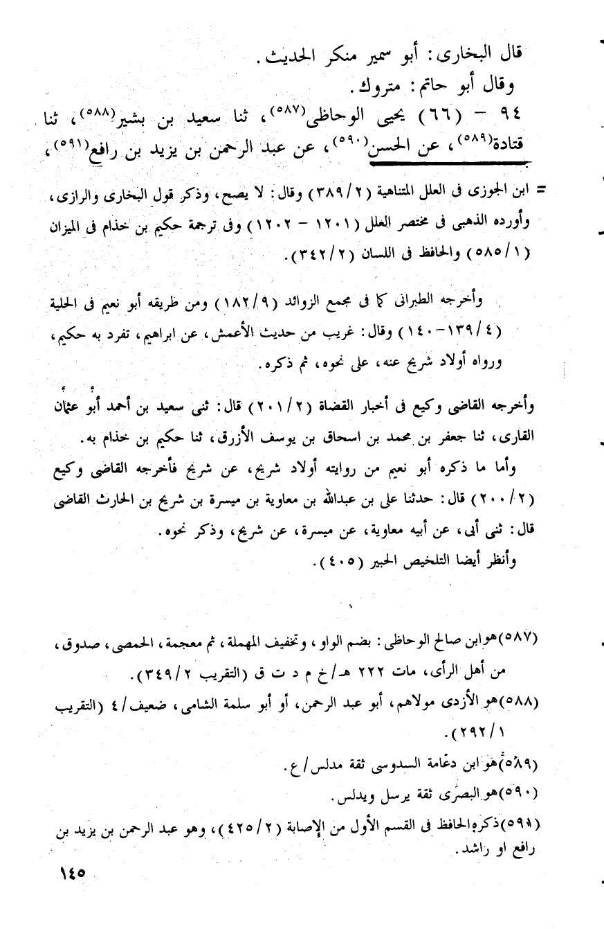 94 - (66) يحيى الوحاظي، ثَنَا سعيد بن بشير، ثَنَا قَتَادَة، عَن الْحسن، عَن عبد الرَّحْمَن بن يزِيد بن رَافع،
