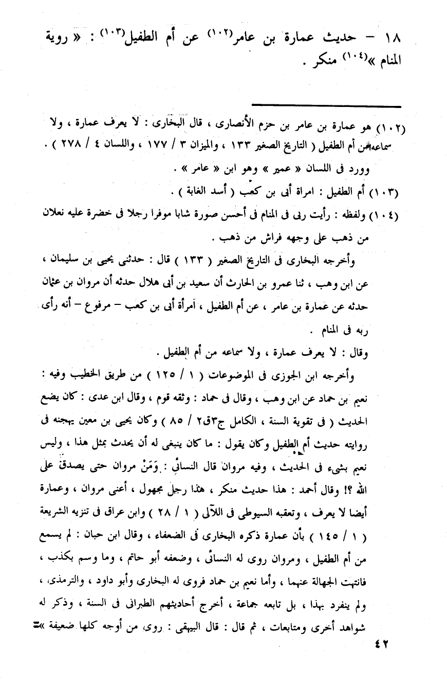 18 - حَدِيث عمَارَة بن عَامر عَن أم الطُّفَيْل: " روية الْمَنَام " مُنكر.