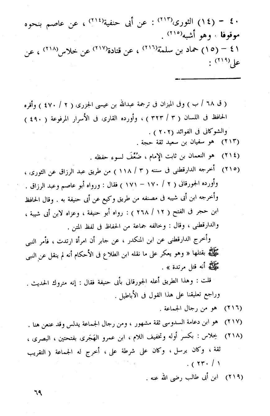 40 - (14) الثورى: عَن أبي حنيفَة، عَن عَاصِم بِنَحْوِهِ مَوْقُوفا، وَهُوَ أشبه.