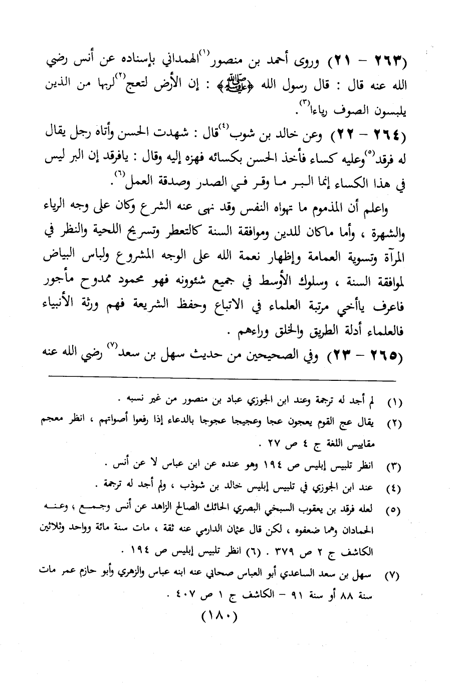 وروى أحمد بن منصور الهمداني بإسناده عن أنس رضي الله عنه، قال: قال رسول الله) : " إن الأرض لتحتج لربها من الذين يلبسون الصوف رياء ".