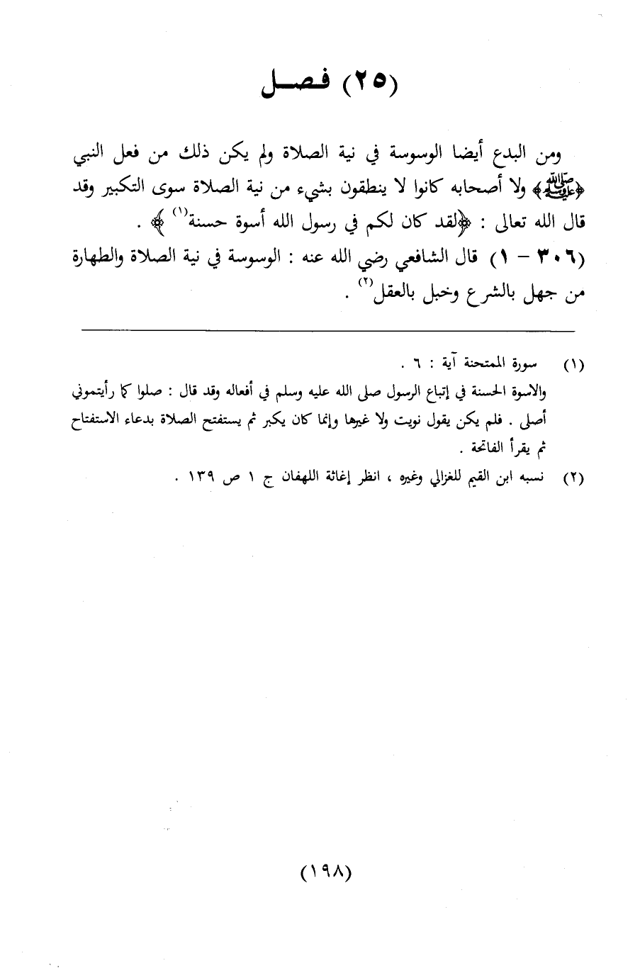 ومن البدع أيضاً الوسوسة في نية الصلاة، ولم يكن ذلك من فعل النبي (ولا أصحابه، كانوا لا ينطقون بشيء من نية الصلاة سوى التكبير. وقد قال الله تعالى: (لقد كان لكم في رسول الله أسوة حسنة) .
