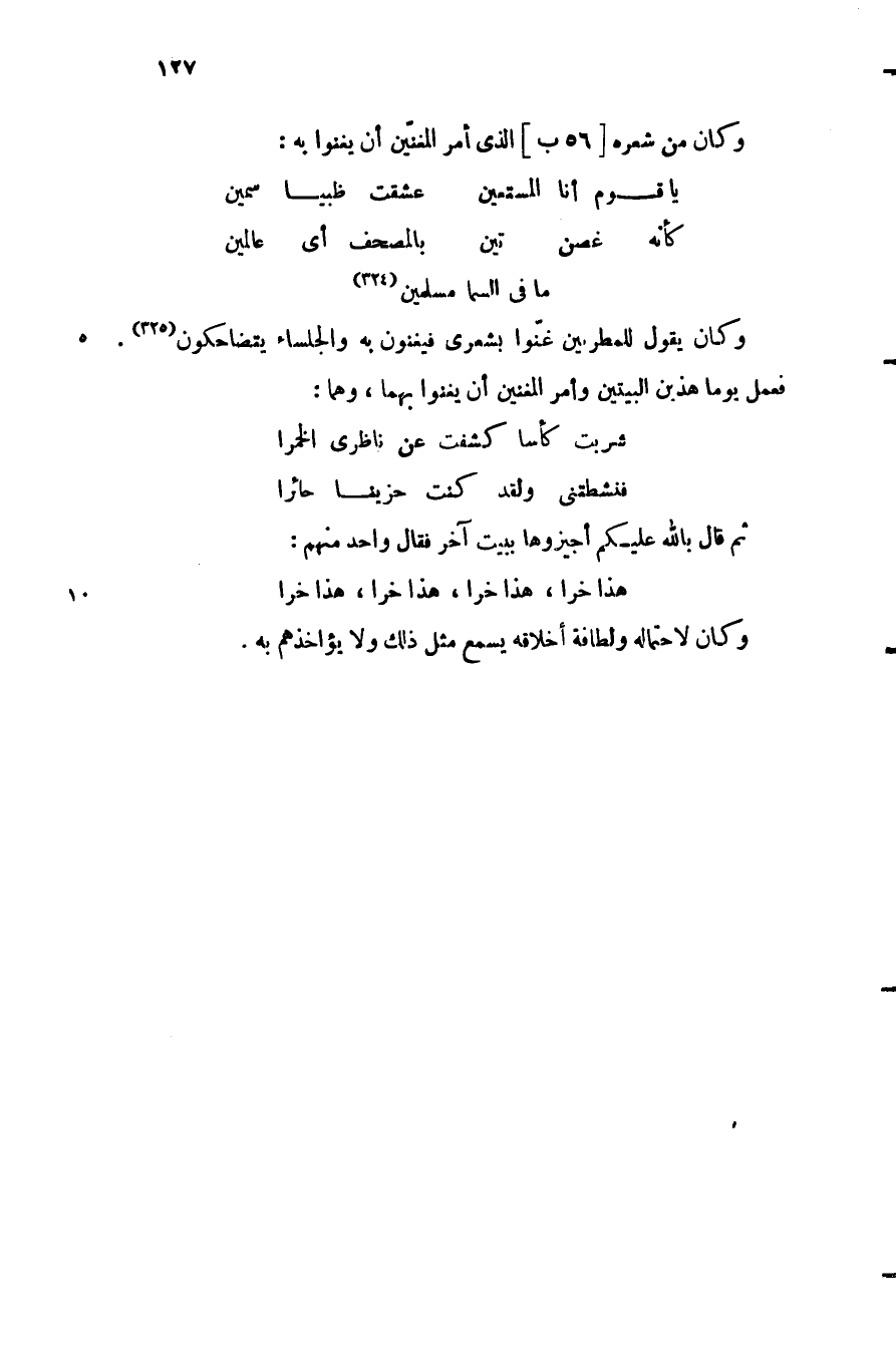 [1] وكان يقول للمطربين غنّوا بشعري فيغنون به والجلساء يتضاحكون «325» .