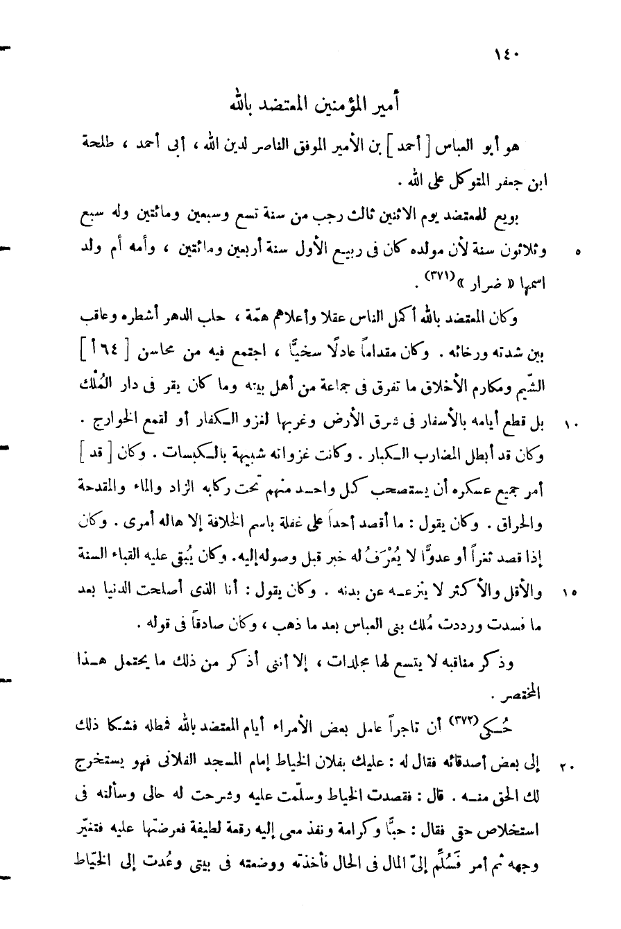 وكان المعتضد باللَّه أكمل الناس عقلا وأعلاهم همّة، حلب الدهر أشطره وعاقب بين شدته ورخائه. وكان مقداما عادلا سخيّا، اجتمع فيه من محاسن [64 أ] الشّيم ومكارم الأخلاق ما تفرق في جماعة من أهل بيته وما كان يقر في دار الملك بل قطع أيامه بالأسفار في شرق الأرض وغربها لغزو الكفار أو لقمع الخوارج.