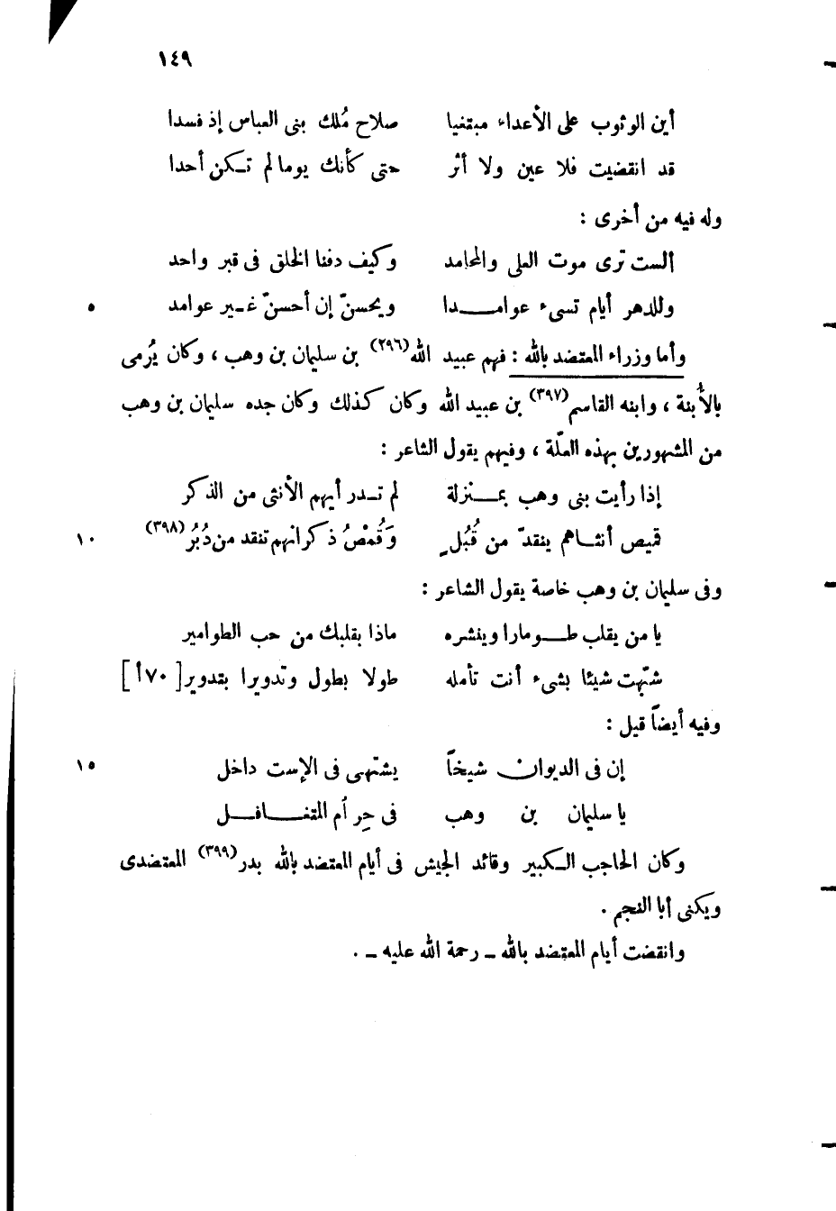 [1] الأبيات لدعبل الخزاعي وهي في ديوانه وأوردها الجرجاني الثقفي في المنتخب من كنايات الأدباء (القاهرة 1326/ 1908) 47.