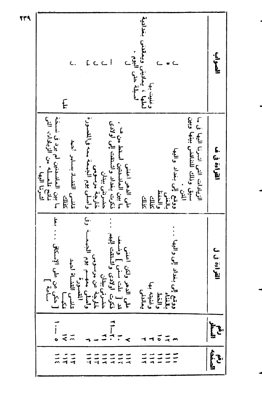 رقم الصفحة/ رقم السطر/ القراءة في ل/ القراءة في ف/ الصواب الزيادات التي أشرنا اليها في ما سبق وذلك للتناقض بينها وبين المتن.