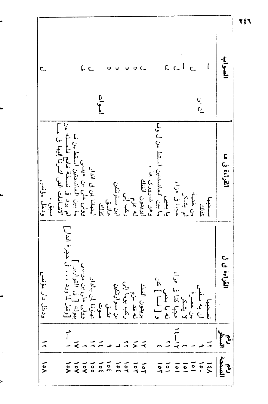 148/ 12/ تصحبها/ تسحبها/- 150/ 9/ ان به سلس/ كذلك/ ان بى 151/ 1/ من حضرة/ من خدمة/ ل 151/ 4/ لا يشكر/ لم يشكر/- 151/ 13- 14/ عجبا كنا في عزاء/ عجبا في عزاء/ ل 151/ 21/ له يا يحيى/ يا يحيى/ ف 153/ 4/ و [لما] كان/ ما بين العاضدتين أسقط من ل وف وهو ضروري هنا. / 153/ 13/ يريدون الفتك/ ليريدون الفتك/ ل 153/ 18/ له قد عزم/ له عزم/ «153/ 22/ ركب يوما إلى/ ركب إلى/ «154/ 6/ بن سوارتكين/ ابن ساوتكين/ «154/ 9/ عشق/ عاشق/ «154/ 14/ صوت/ كذلك/ أصوات 155/ 12/ تهاونا لمن بالدار/ امتهانا لمن في الدار/ ل 157/ 2/ وولى على بن موسى/ وولى على بن عيسى/ ف 157/ 17/ ببوله [في القوارير] / ما بين العاضدتين أسقط من ف/ 158/ 1- 9/ [وقيل لما ورد ... في حجرة الدار] / لم يرد في نسخة فاتح فلعله من الإضافات التي أشرنا إليها في ما سبق.