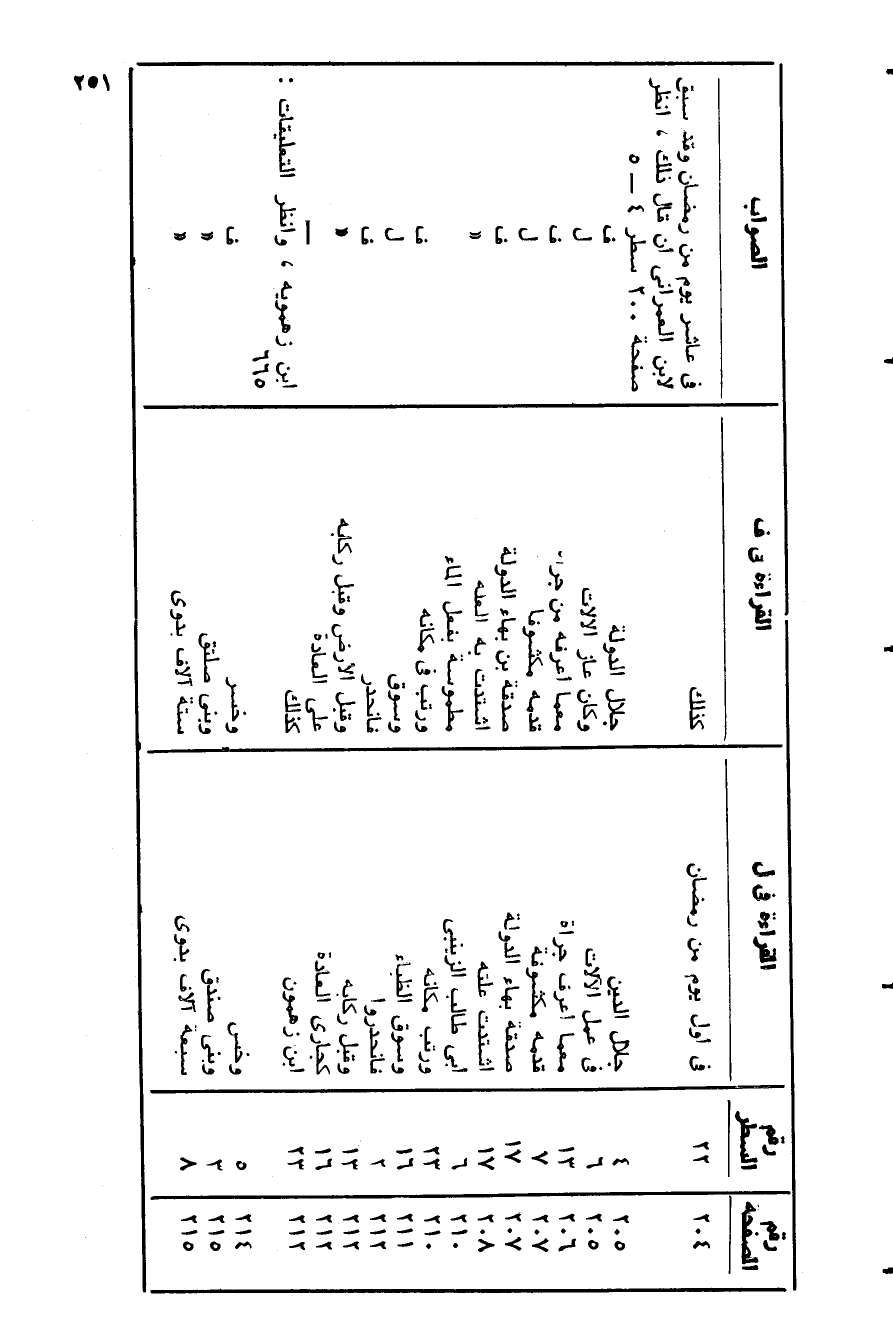 رقم الصفحة/ رقم السطر/ القراءة في ل/ القراءة في ف/ الصواب 204/ 22/ في أول يوم من رمضان/ كذلك/ في عاشر يوم من رمضان وقد سبق لابن العمراني أن قال ذلك، انظر صفحة 200 سطر 4- 5 205/ 4/ جلال الدين/ جلال الدولة/ ف 205/ 6/ في عمل الآلات/ وكان عاز الآلات/ ل 206/ 13/ معما اعرف جراة/ معما أعرفه من جراة/ ف 207/ 7/ قدمه مكشوفة/ قدمه مكشوفا/ ل 207/ 17/ صدقة بهاء الدولة/ صدقة بن بهاء الدولة/ ف 208/ 17/ اشتدت علته/ اشتدت به العلة/ «210/ 6/ أبى طالب الزينبي/ مطموسة بفعل الماء/ 210/ 23/ ورتب مكانه/ ورتب في مكانه/ ف 211/ 16/ وسوق الظباء/ وسوق/ ل 212/ 2/ فانحدروا/ فانحدر/ ف 212/ 13/ وقبل ركابه/ وقبل الأرض وقبل ركابه/ «212/ 16/ كجارى العادة/ على العادة/- 212/ 23/ ابن زهمون/ كذلك/ ابن زهمويه، وانظر التعليقات: 665 214/ 5/ وخس/ وخسر/ ف 215/ 3/ وبنى صندق/ وبنى صلتق/ «215/ 8/ سبعة آلاف بدوي/ ستة آلاف بدوي/ «