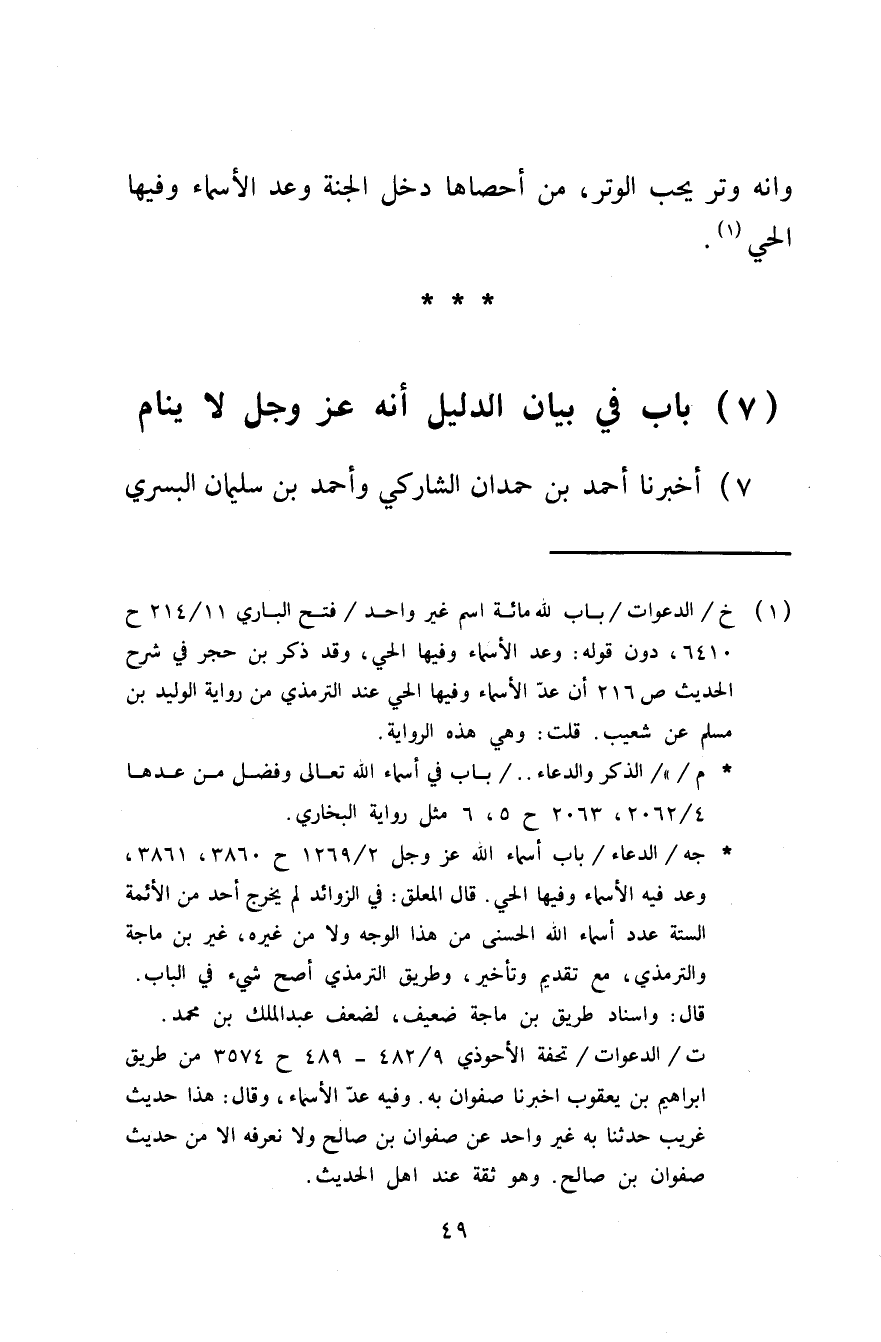 - (7) بَاب فِي بَيَان الدَّلِيلِ أَنَّهُ عَزَّ وَجَلَّ لَا يَنَامُ)