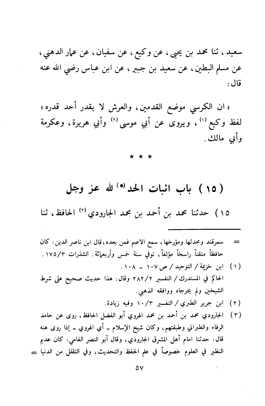 - (15) بَابُ إِثْبَاتِ الْحَدِّ لِلَّهِ عَزَّ وَجَلَّ)