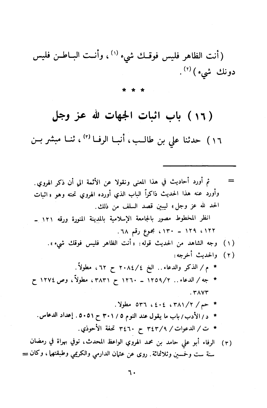 - (16) بَابُ إِثْبَاتِ الْجِهَاتِ لِلَّهِ عَزَّ وَجَّلَ)