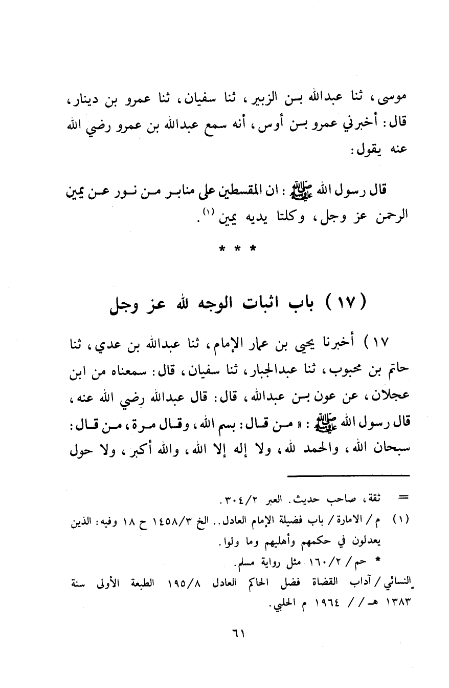 - (17) بَابُ إِثْبَاتِ الْوَجْهِ لِلَّهِ عَزَّ وَجَلَّ)