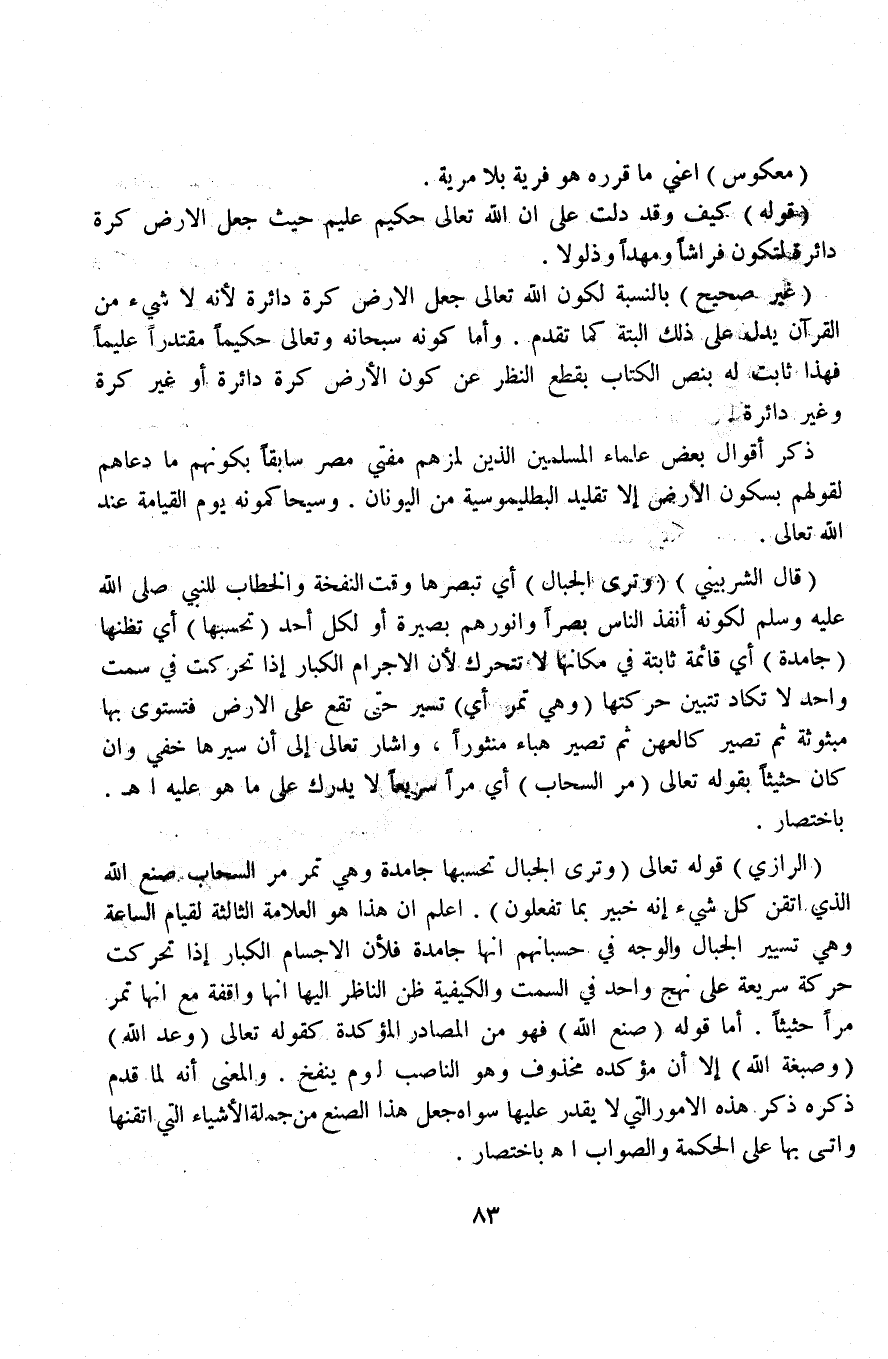 ذكر أقوال بعض علماء المسلمين الذين لمزهم مفتي مصر سابقاً بكونهم ما دعاهم لقولهم بسكون الأرض إلا تقليد البطليموسية من اليونان. وسيحاكمونه يوم القيامة عند الله تعالى.