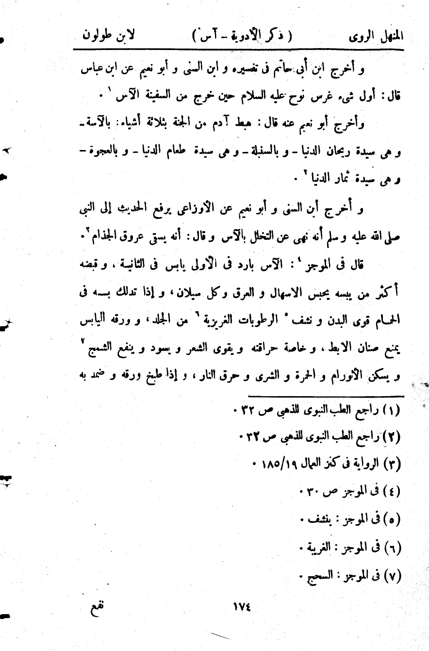 وأخرج الخطيب عن سلمى مولاة النبي صلى الله عليه وسلم قال: كنت عند رسول الله صلى الله عليه وسلم يوماً جالسة إذا أتى رجل فشكى إليه وجعاً يجده في رأسه فأمره بالحجامة وسط رأسه, وشكى إليه ضرباناً يجده في قدميه فأمره أن يخضبها بالحناء, ويلقي في الحناء شيئاً من ملح - وفي رواية: شيئاً من حرمل.