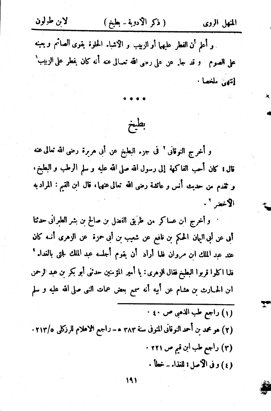 قال القالي في أماليه حدثنا محمد بن القاسم الأنباري حدثنا محمد بن يونس الكريمي حدثنا إبراهيم حدثنا زكريا البزار حدثنا عمر بن أزهر الواسطي عن أبان عن أنس رضي الله تعالى عنه قال: قال النبي صلى الله عليه وسلم: أكل السفرجل يذهب بطخاء القلب.