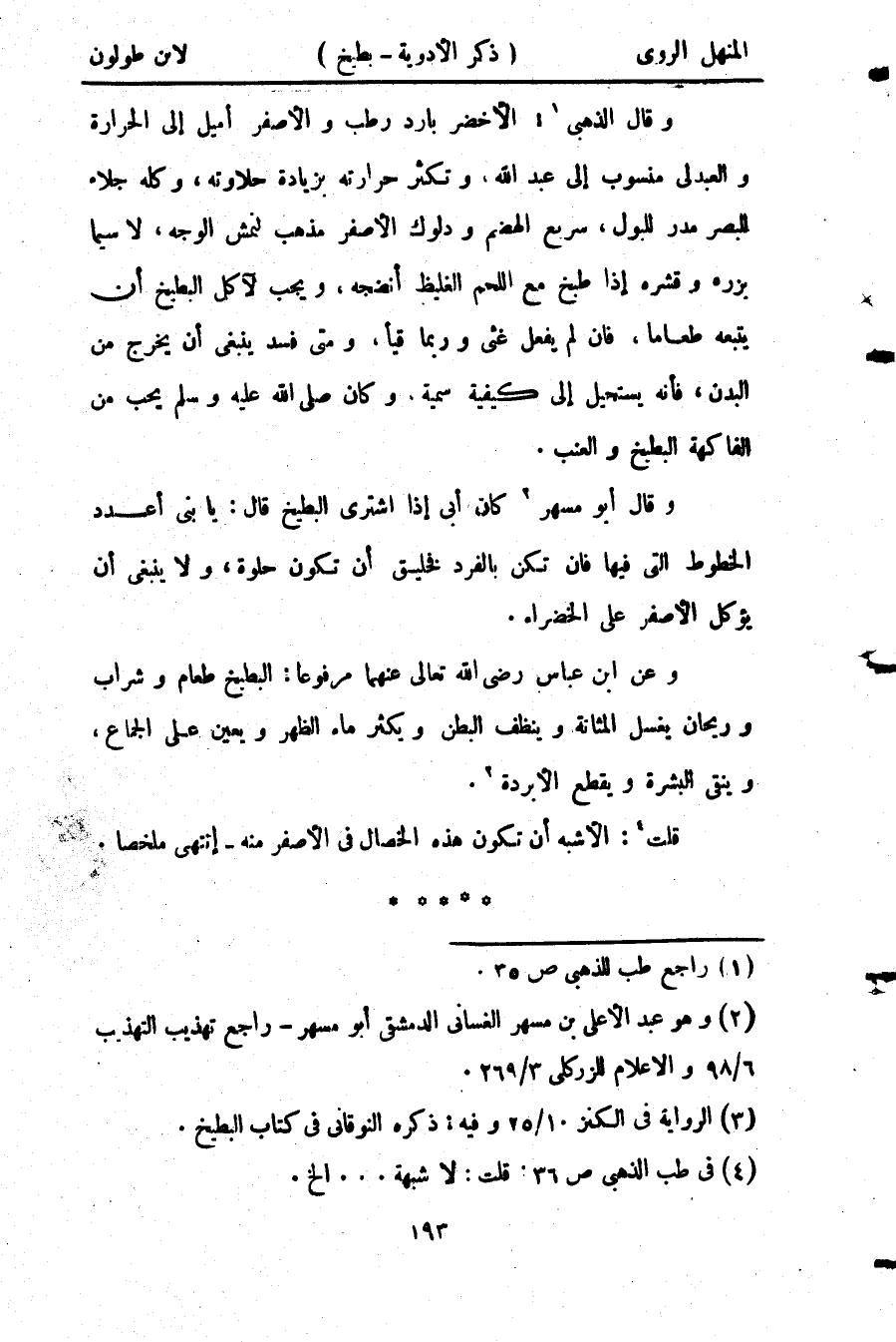 وأخرج أيضاً عن عمر بن عبد العزيز أنه كان يأكل البطيخ بالطبررذ.