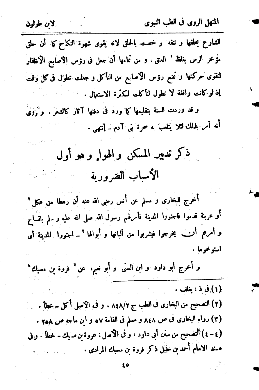ولا تتقطع ويليها ثلاثة أمعاء دقاق: الأول الاثني عشرى طوله اثني عشر إصبعاً والثاني يسمى الصائم, لأنه في أكثر الأوقات يكون خالياً, والثالث طويل ملتف دقيق يسمى اللفايفي, ثم بعد هذه الثلاثة ثلاثة غلاظ: يسمى الأول الأعور وهو واسع ليس له منفذ في الجانب الآخر وفيه ينتن البراز, والثاني يسمى القولون,