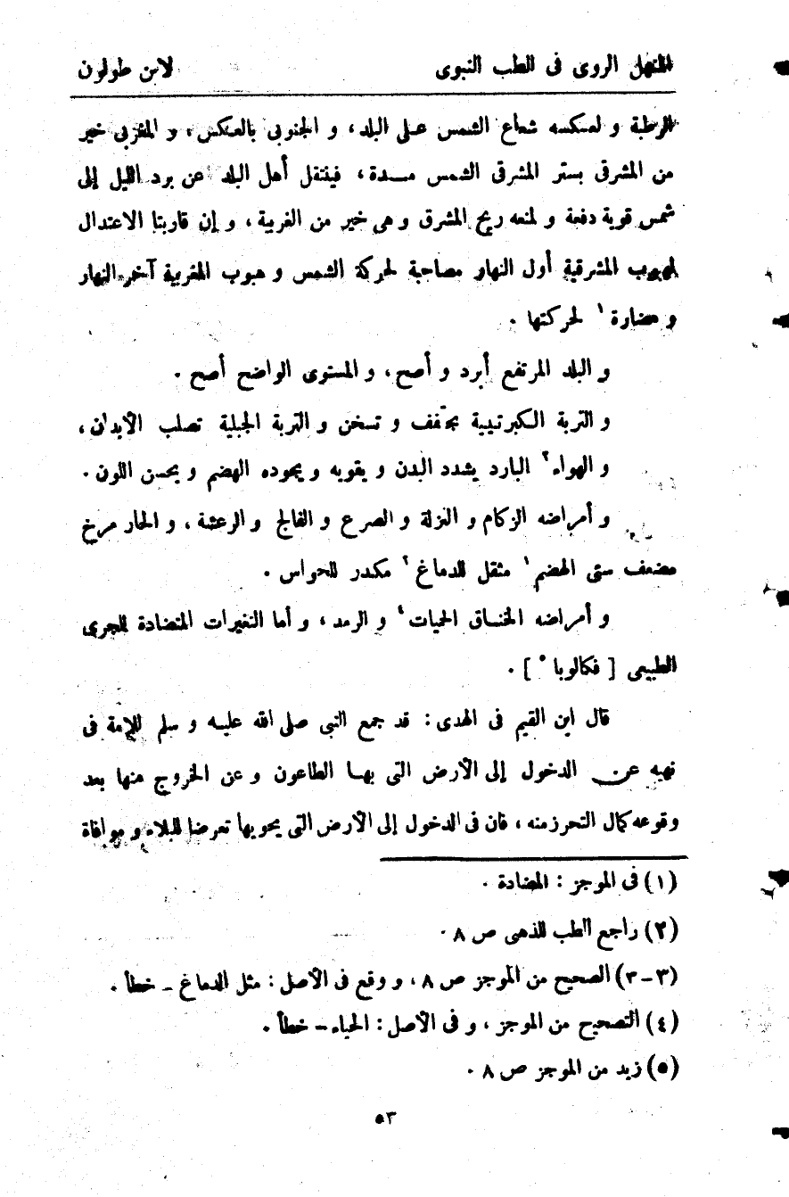 وأما غير طبيعية ولا مضارة لها وذلك من أسباب، إما سماوية كحصول برد إما أرضية كما تكون بسبب اختلاف المساكن، وإما لبعدها عن الاستواء الذي في غاية الاعتدال أو لمجاورتها الجبال أو لوضعها أو لتربتها.