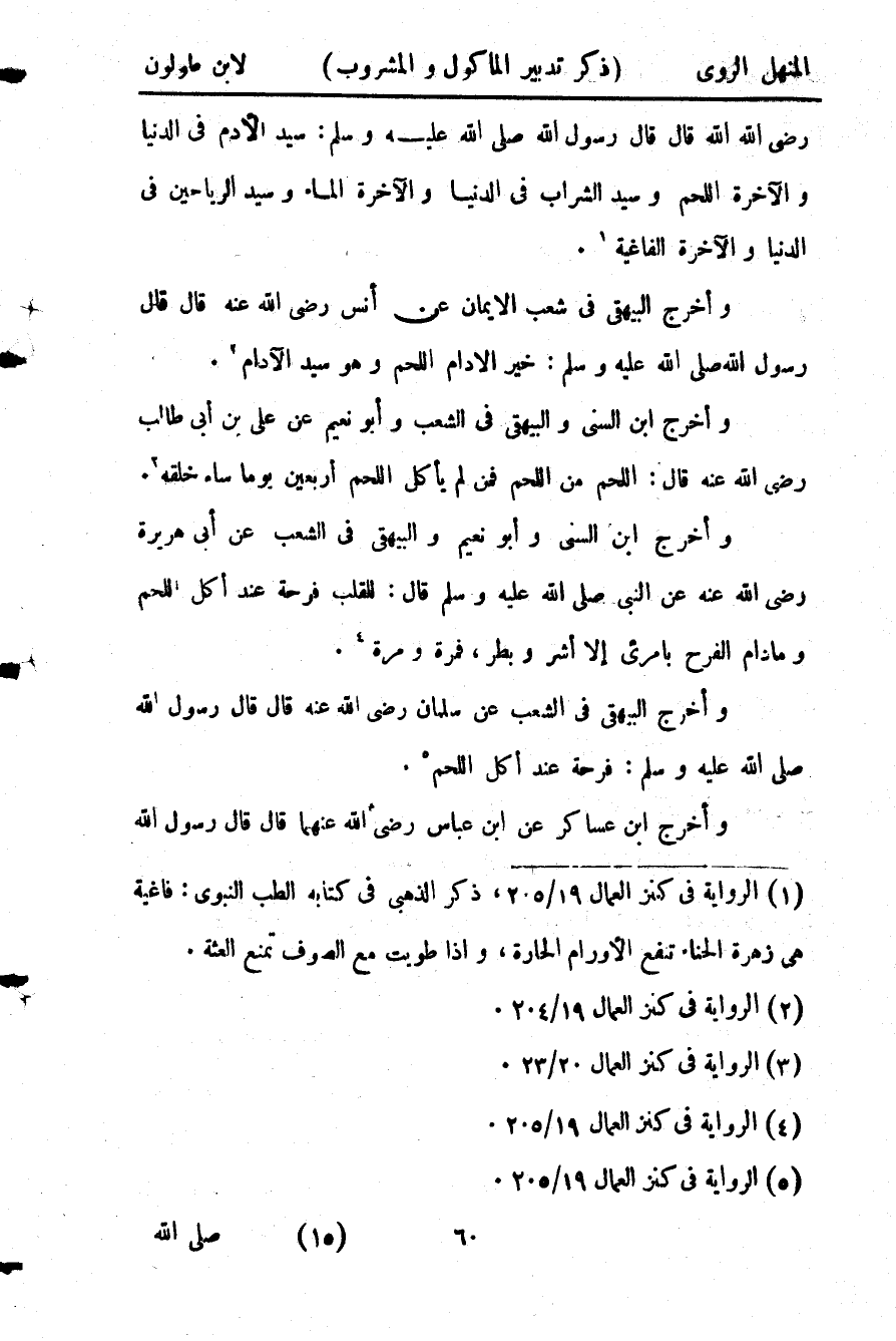 وأخرج أبو عبيد وأحمد وأبو نعيم عن ضباعة بنت الزبير أنها ذبحت في بيتها شاة فأرسل إليها رسول الله صلى الله عليه وسلم أن أطعمنها من شاتكم، فقالت للرسول: ما بقي عندنا إلا الرقبة وإني لأستحي أن أبعث بها إلى رسول الله صلى الله عليه وسلم فرجع الرسول فأخبره فقال: ارجع إليها فقل لها: أرسلي بها فإنها هادية الشاة وأقرب الشاة إلى الخير وأبعدها عن الأذى.