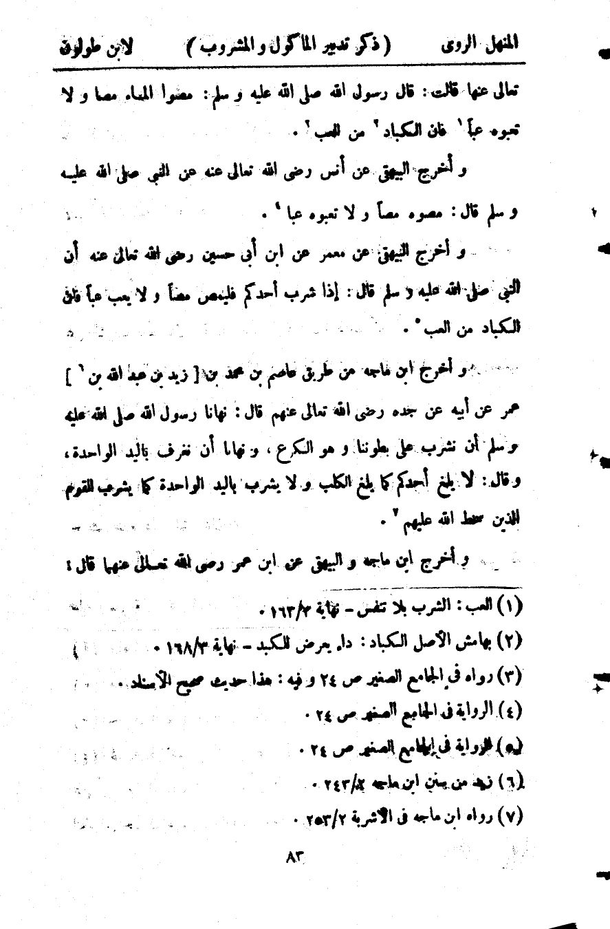 ومراتب الغذاء ثلاثة: أحدها مرتبة الحاجة, والثانية مرتبة الكفاية, الثالثة مرتبة الفضلة فأخبر النبي صلى الله عليه وسلم أنه يكفيه لقمات يقمن صلبه فلا تسقط قوته ولا تضعف معه؛ فإذا تجاوزها: فليأكل في ثلث بطنه ويدع الثلث الآخر للماء, والثلث للنفس.