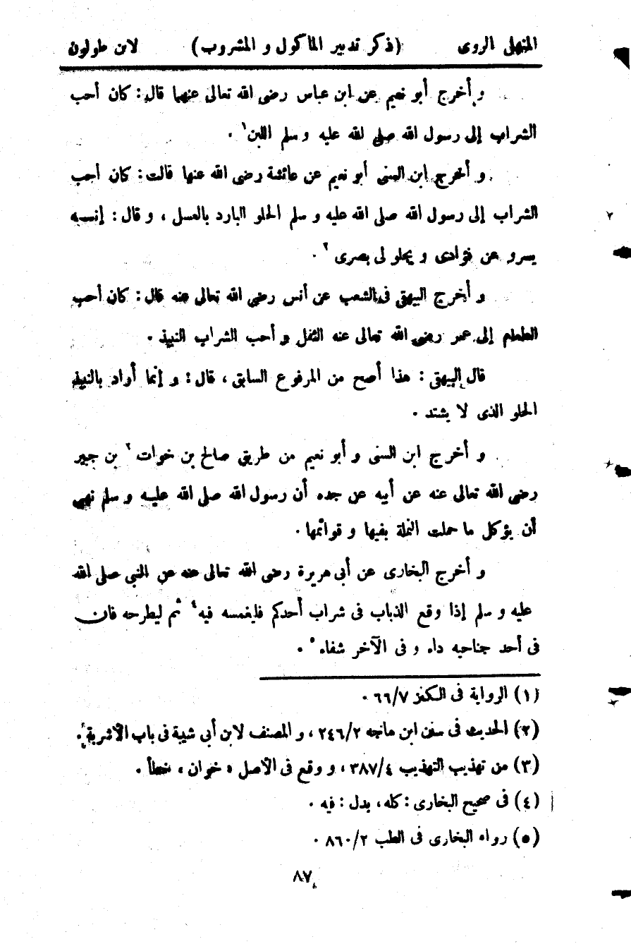 وأما الشرب منبطحاً فالأطباء تكاد تحرمه ويقولون: إنه يضر بالمعدة. كان من هديه أنه يشرب في ثلاثة أنفاس, وفي هذا الشرب حكمة جمة, وفوائد مهمة.