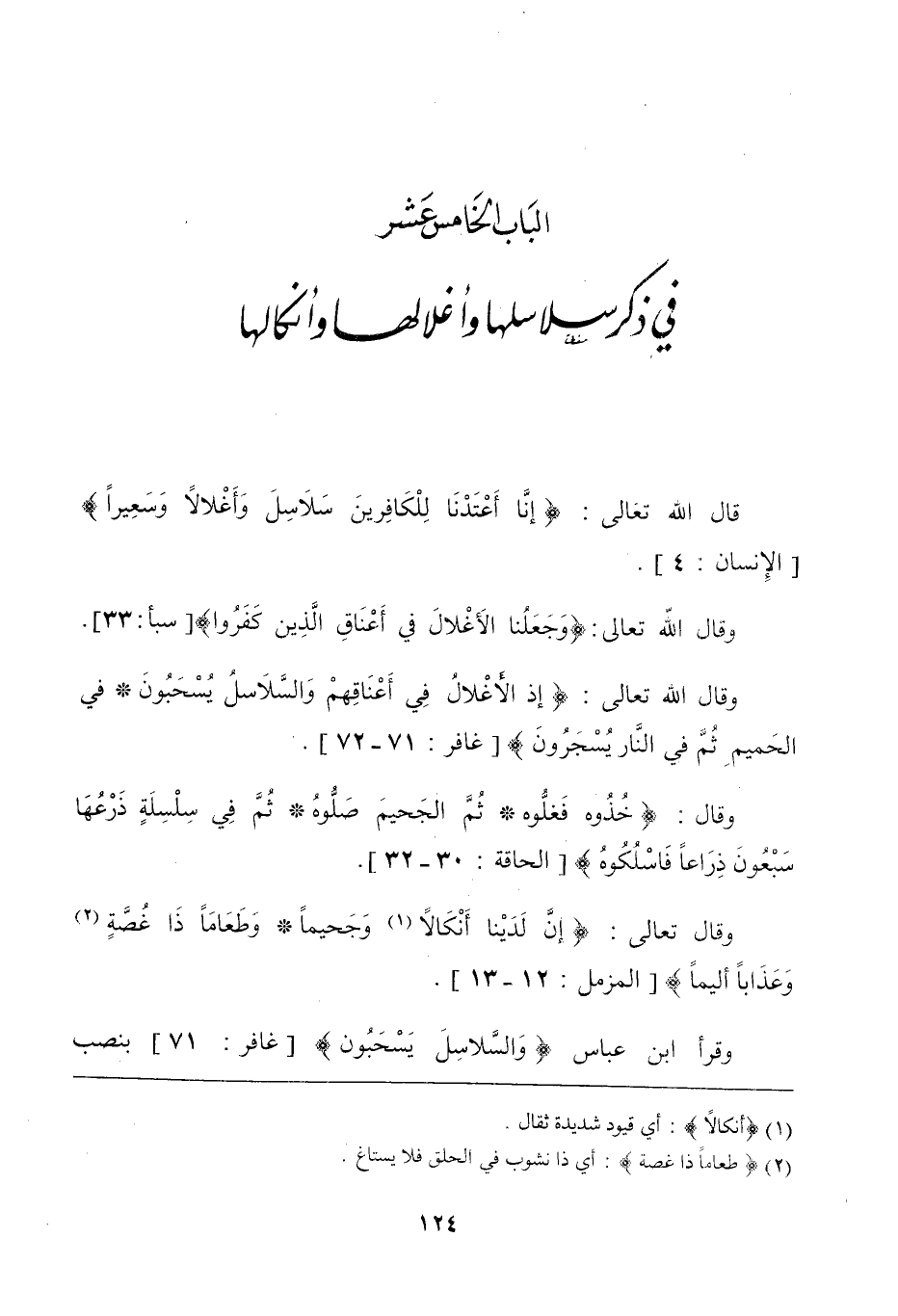 الباب الخامس عشر ـ في ذكر سلاسلها واغلالها وأنكالها