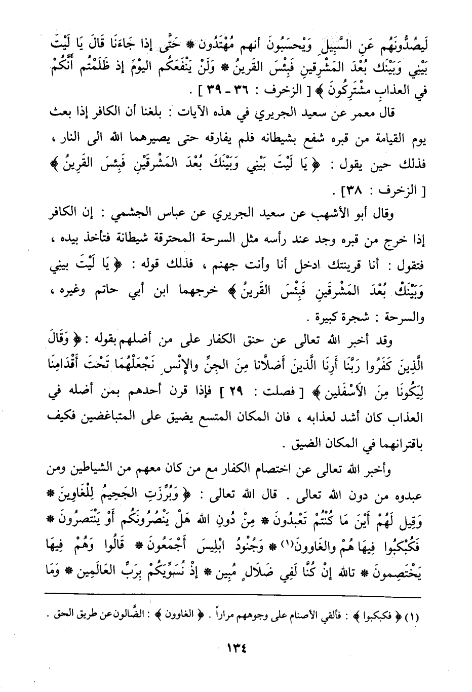 ليصدونهم عن السبيل ويحسبون أنهم مهتدون * حتى إذا جاءنا قال يا ليت بيني وبينك بعد المشرقين فبئس القرين * ولن ينفعكم اليوم إذ ظلمتم أنكم في العذاب مشتركون} .