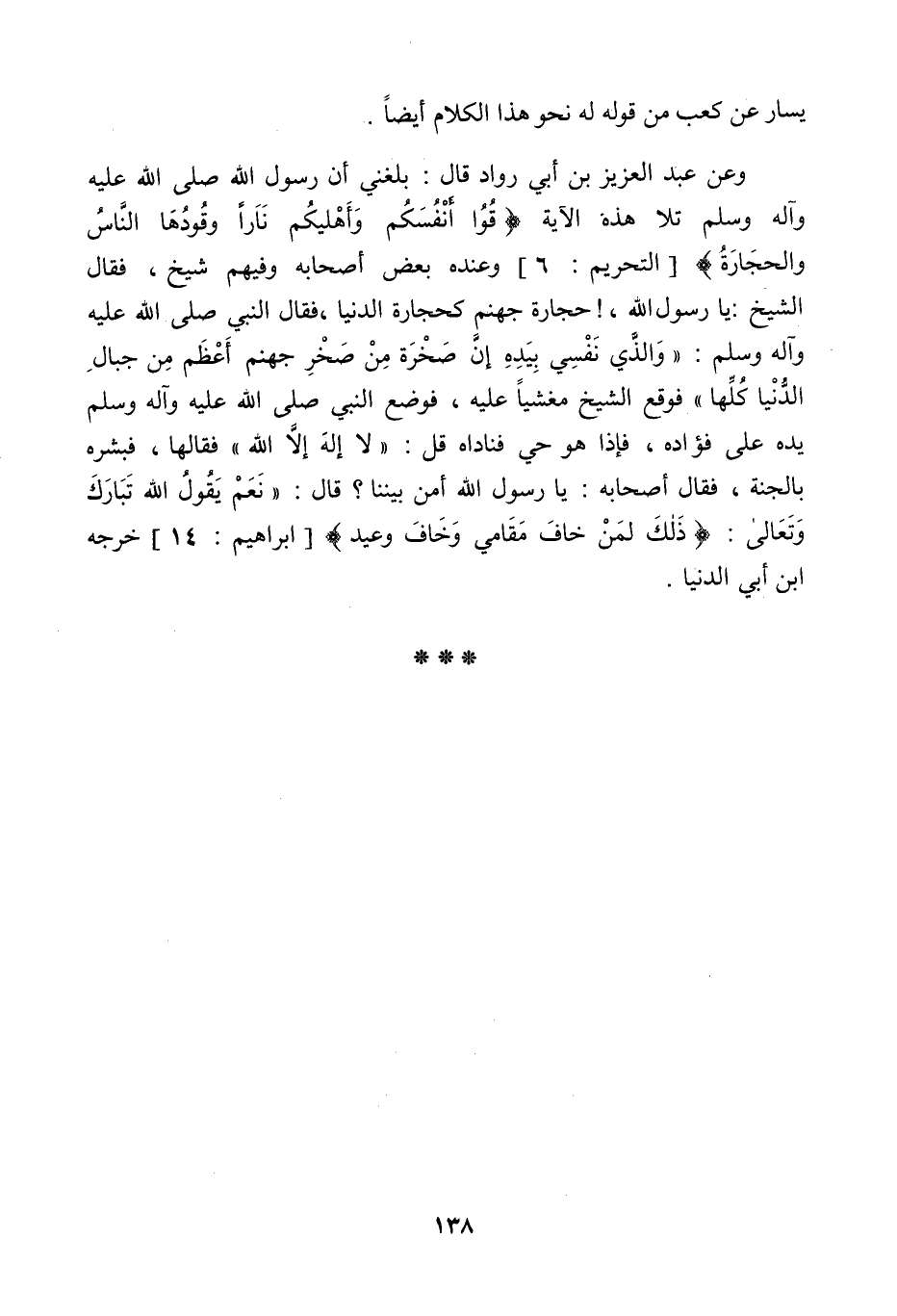 «وعن عبد العزيز بن أبي رواد قال: بلغني أن رسول الله صلى الله عليه وآله وسلم تلا هذه الآية: