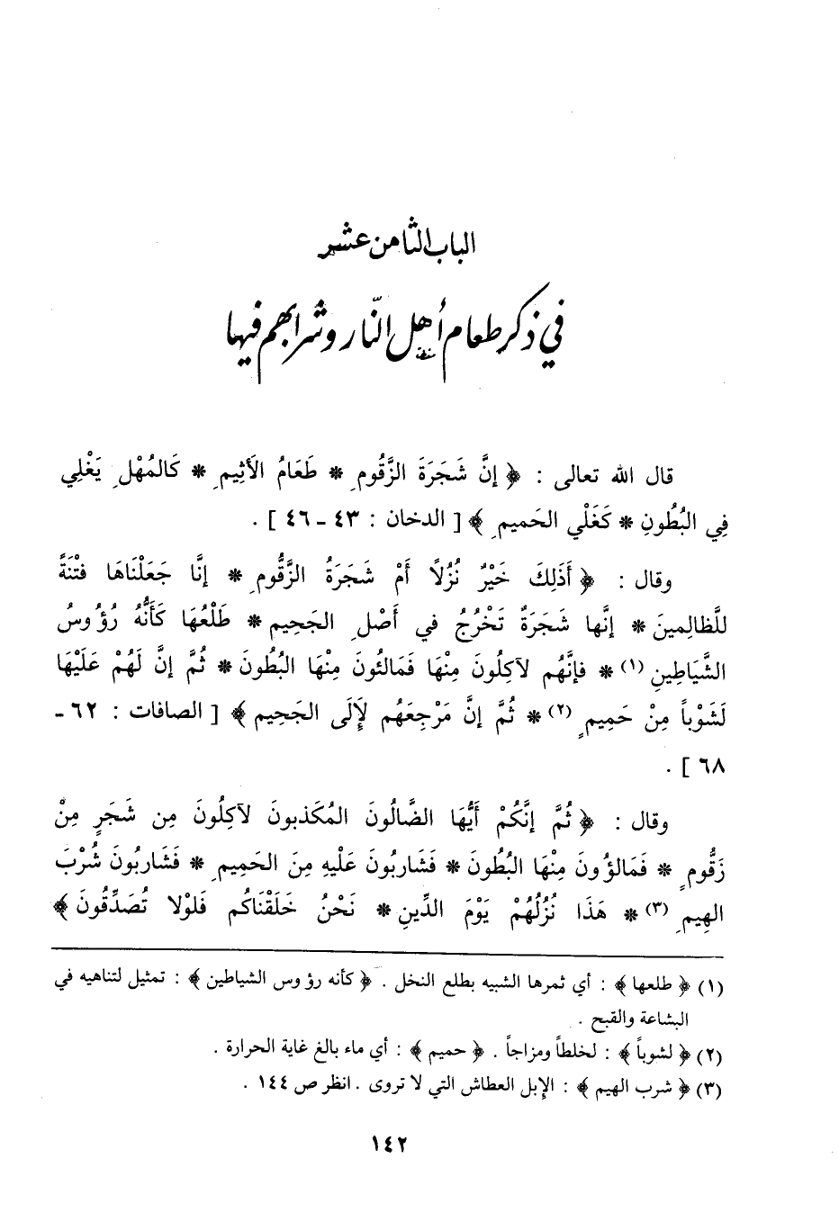 الباب الثامن عشر ـ في ذكر طعام أهل النار وشرابهم فيها