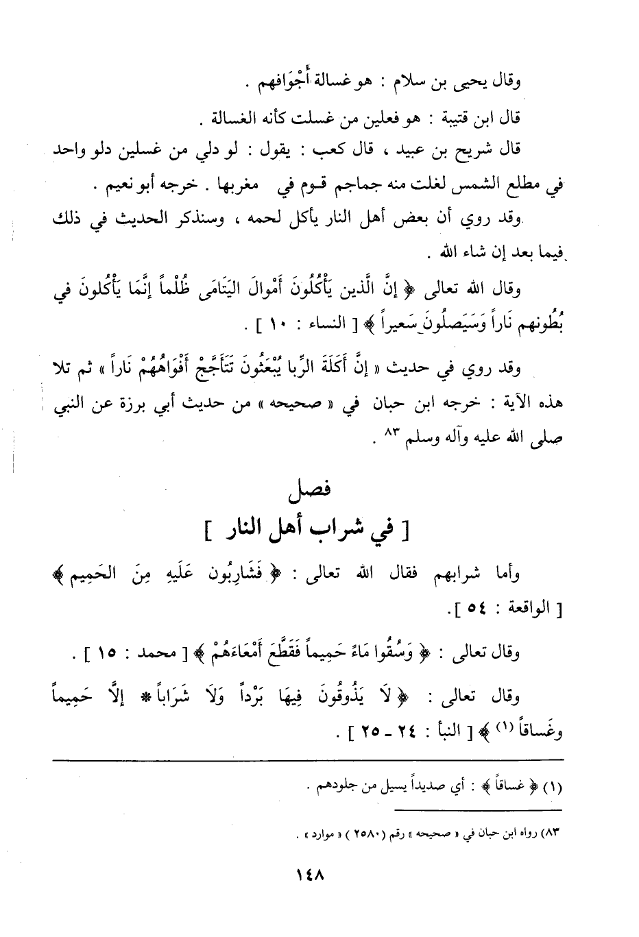 وقال تعالى: {لا يذوقون فيها بردا ولا شرابا * إلا حميما وغساقا} .