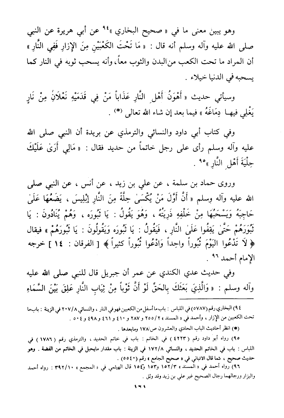 وهو يبين معنى ما في صحيح البخاري «عن أبي هريرة، عن النبي صلى الله عليه وآله وسلم، أنه قال: ما تحت الكعبين من الأزرار ففي النار» أن المراد ما تحت الكعب من البدن والثوب معاً.