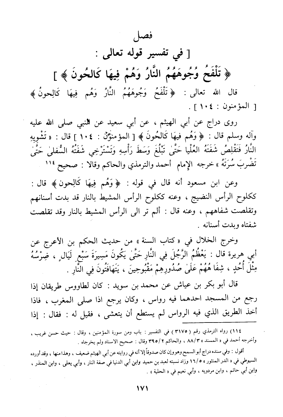فصل ـ في تفسير قوله تعالى: تلفح وجوههم النار وهم فيها كالحون